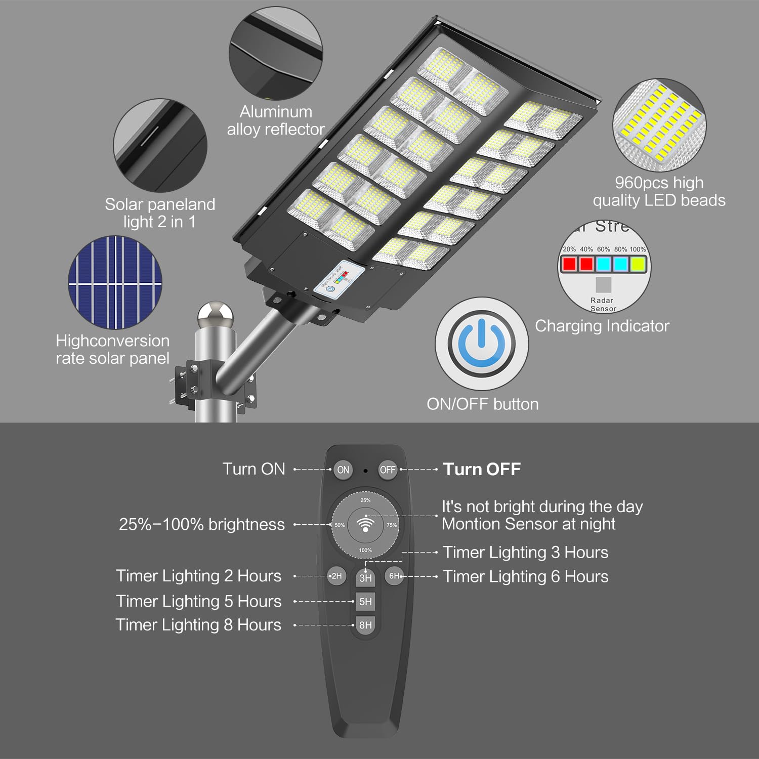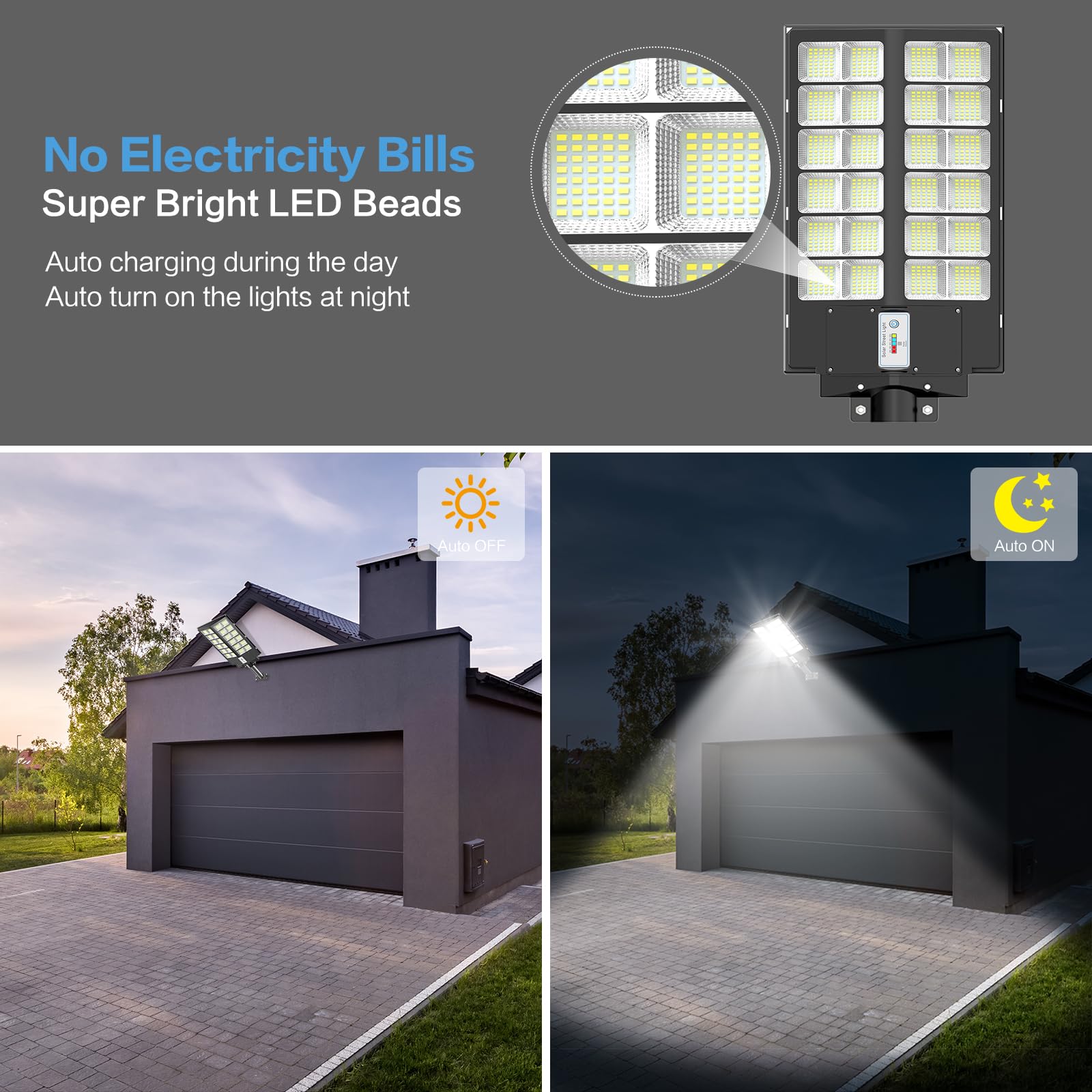1500W Solar Street Light Outdoor Waterproof 120000 Lumens Dusk to Dawn Solar Flood Light Motion Sensor, LED Solar Lights with Remote Control for Parking Lot, Backyard