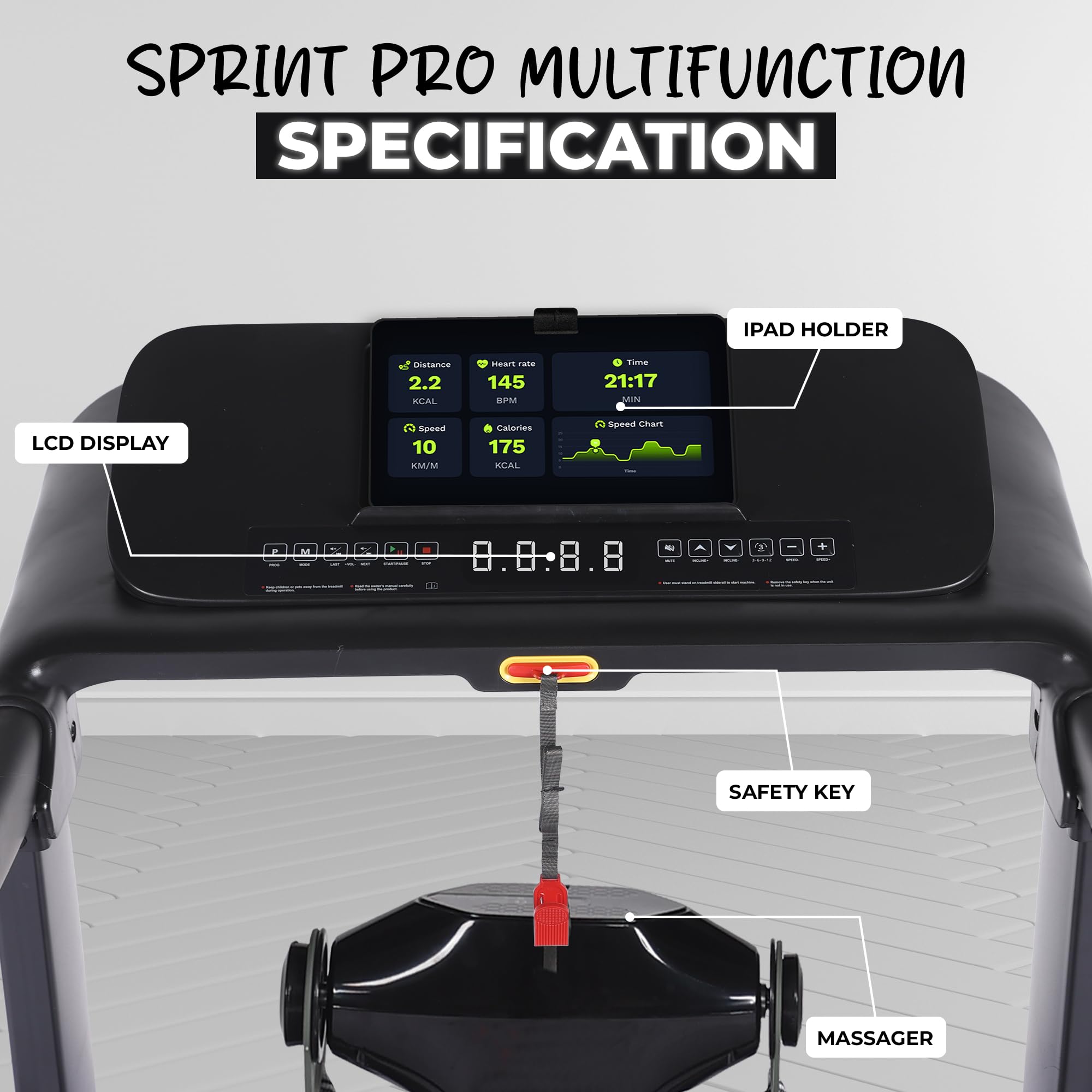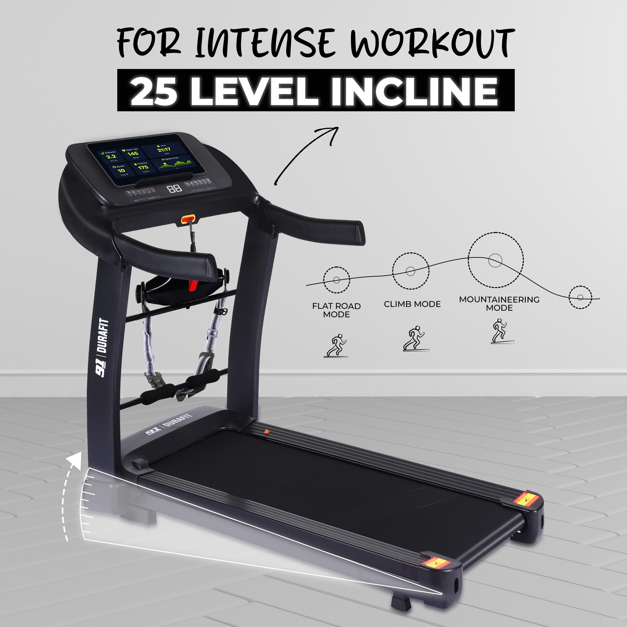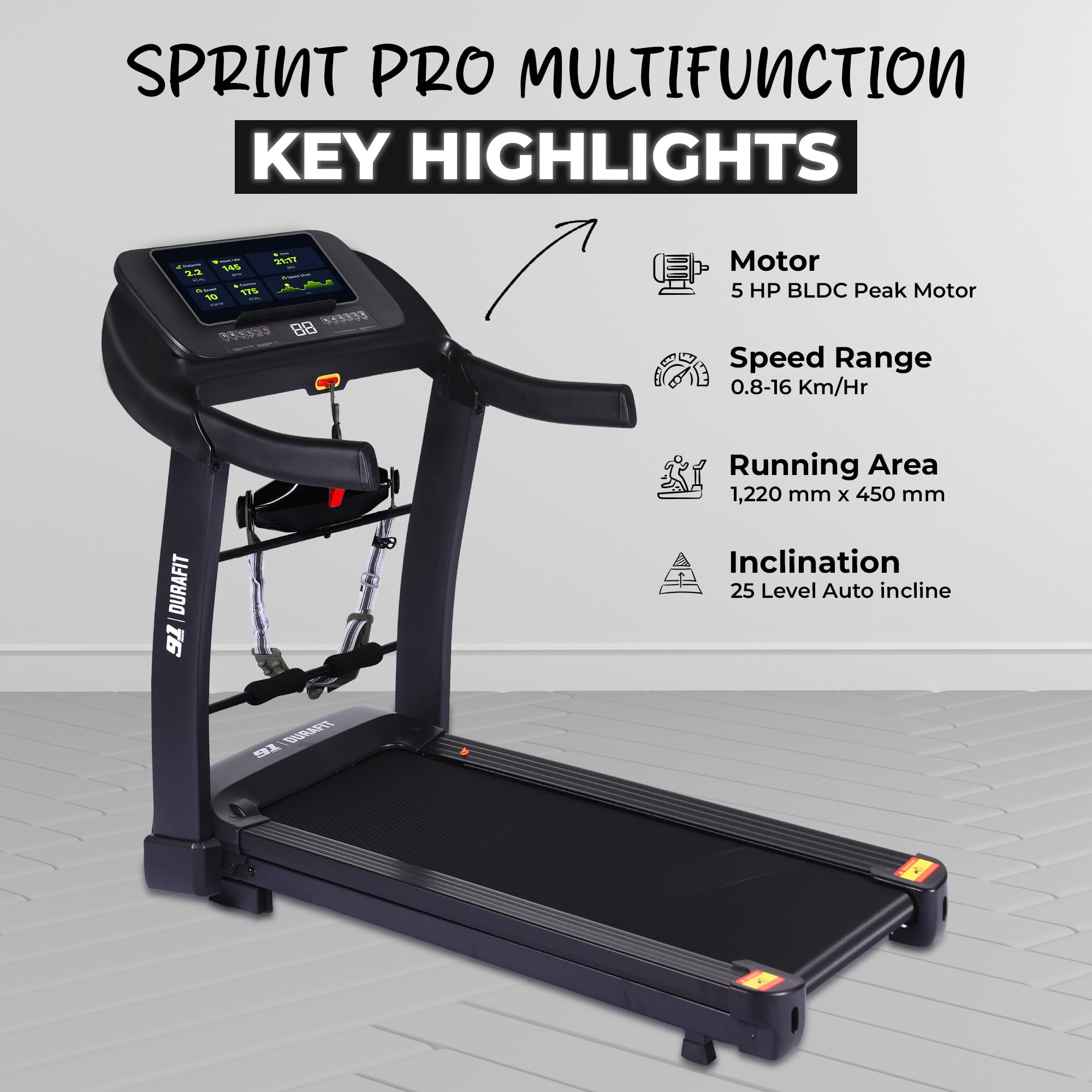 91-Durafit Sprint Pro Multifunction 5 HP Peak BLDC Motorized | 25 Level Auto Incline |16 Km/Hr Max Speed | 140 Kg User Weight | Free (DIY) Installation Assistance