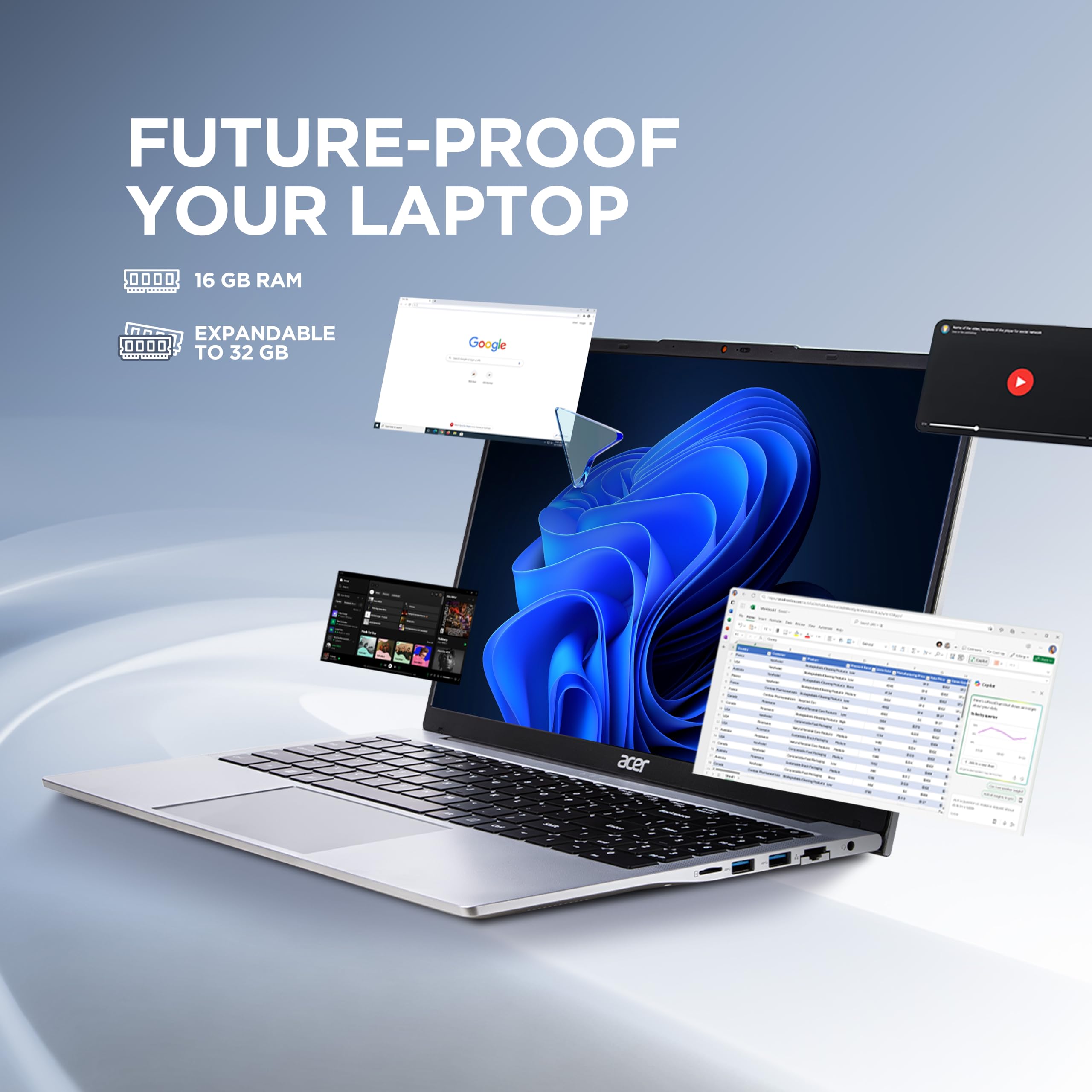 Acer Aspire 3 Steel Gray 12th Gen I3 Laptop 16GB RAM 512GB SSD