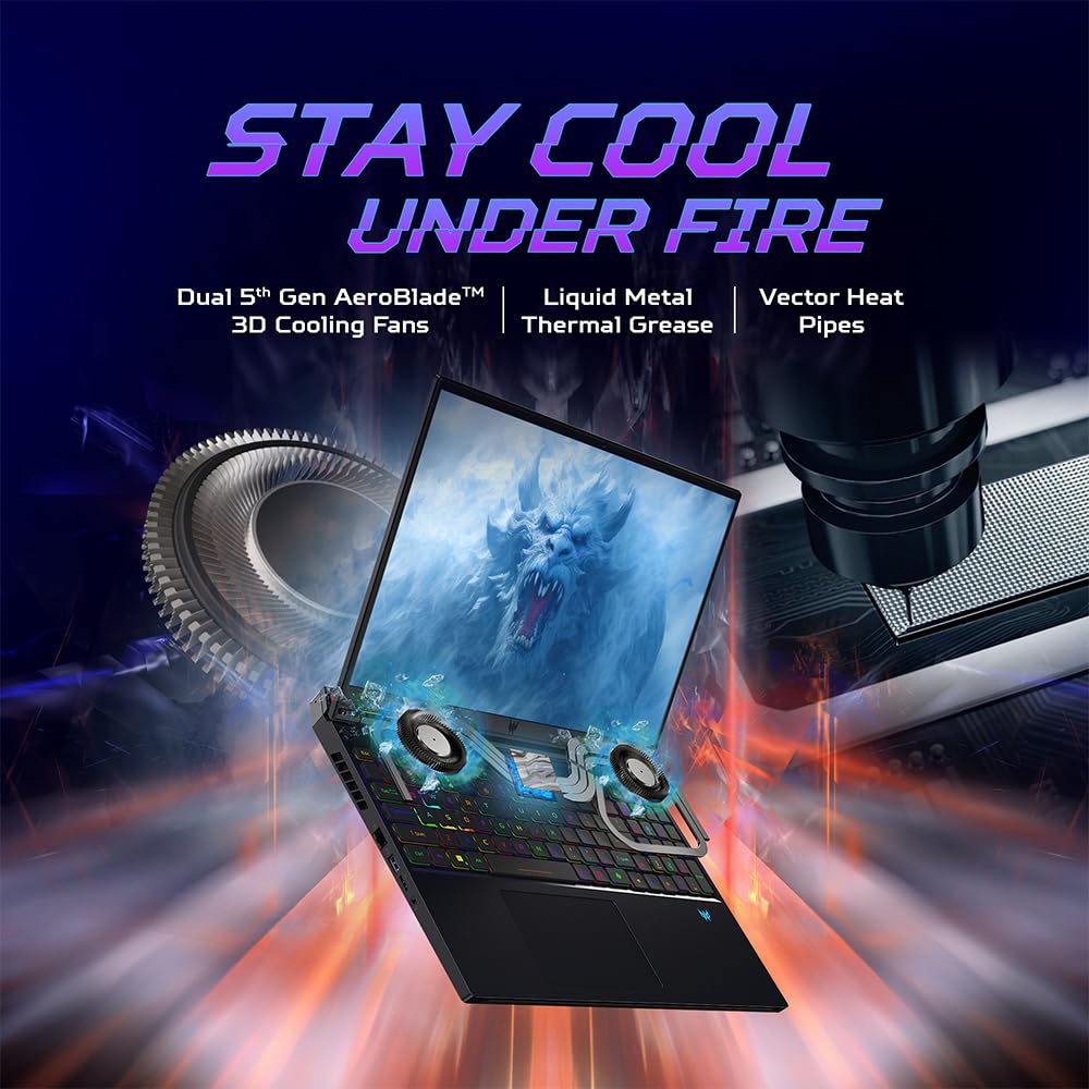 Acer Predator Helios 16 AI Gaming Laptop 14th Gen Intel Core i9 Processor (32 GB RAM/1 TB SSD/NVIDIA GeForce RTX 4080/240Hz/Wifi 7/Win11 Home) PH16-72 with 40.64 cm (16") WQXGA IPS Display, 2.65 KG