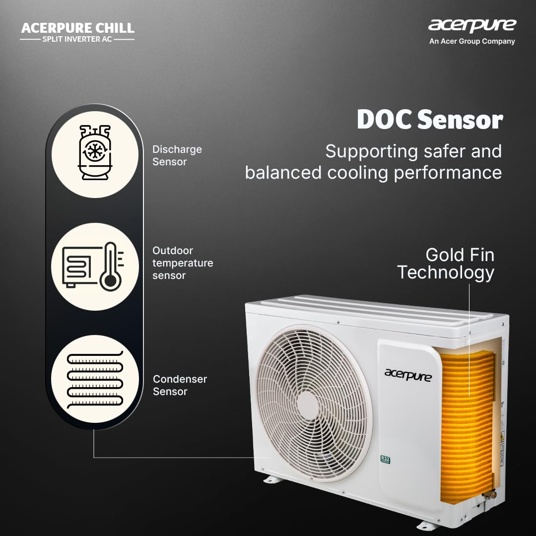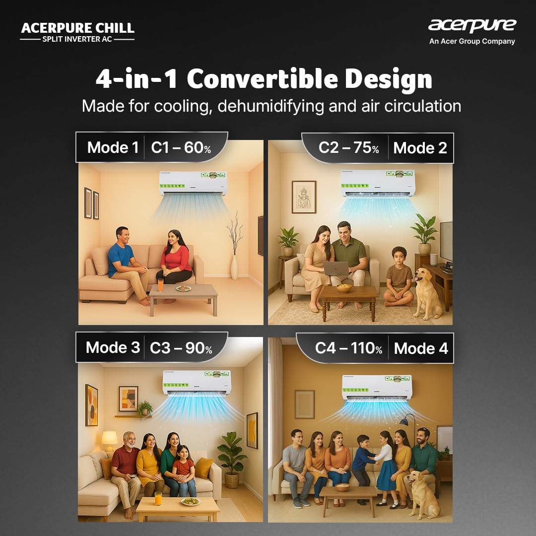 Acerpure Chill Inverter Split Air Conditioner 1.5 ton 3 star, 4 in 1 convertible design, Anti-virus Filter, Blue Fin Technology Air Conditioner (White)