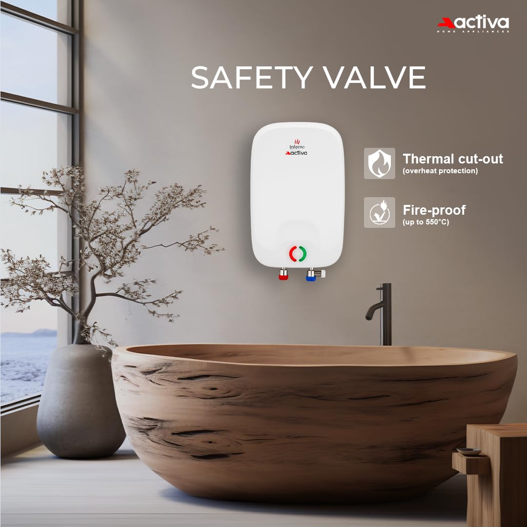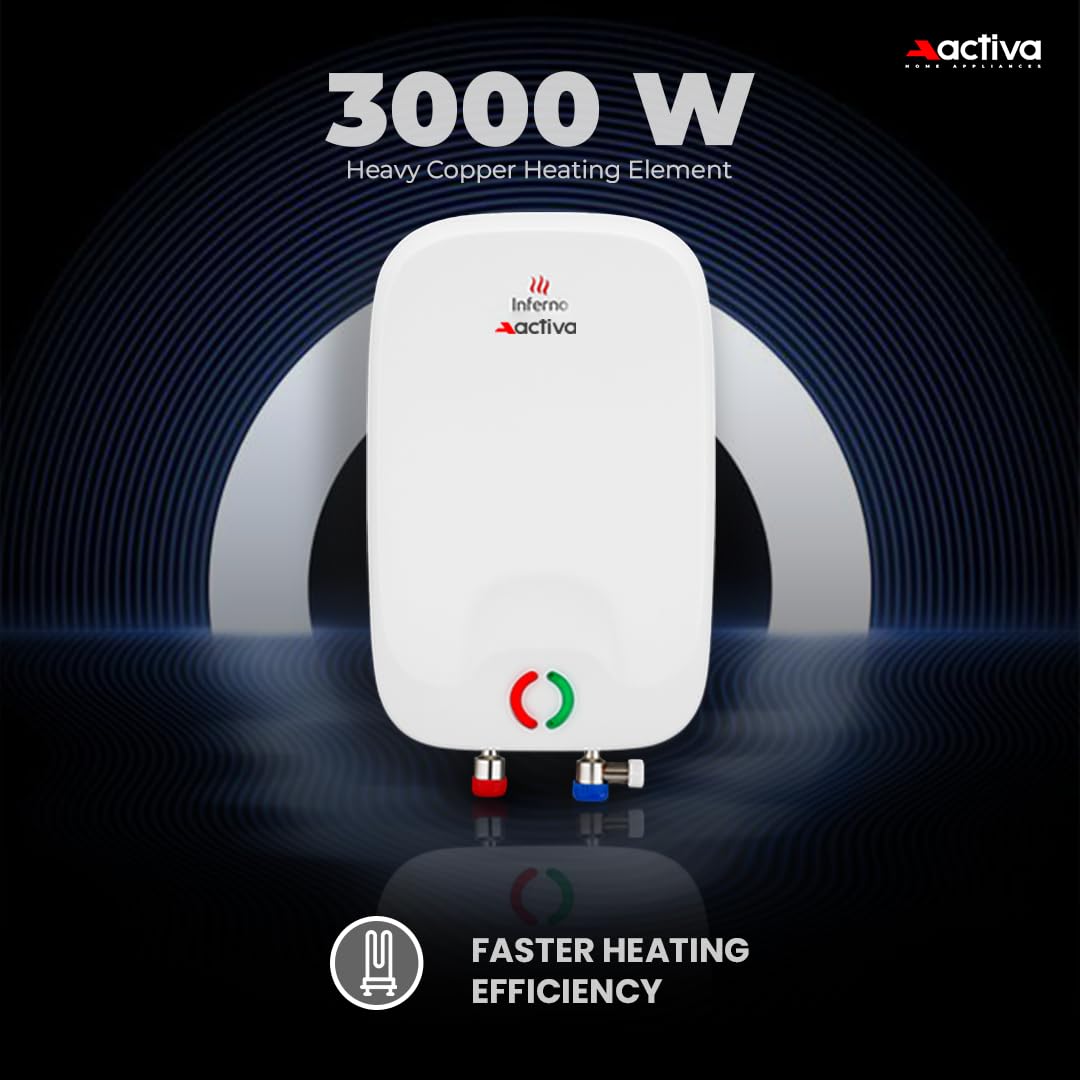 ACTIVA Inferno 6 L Instant Water Geyser | BEE 5-Star Rating | Powerful Copper Heating Element | ISI Marked | Energy Efficient | 5 Safety Protections | Compact Wall-Mounted Design | 5-Year Warranty