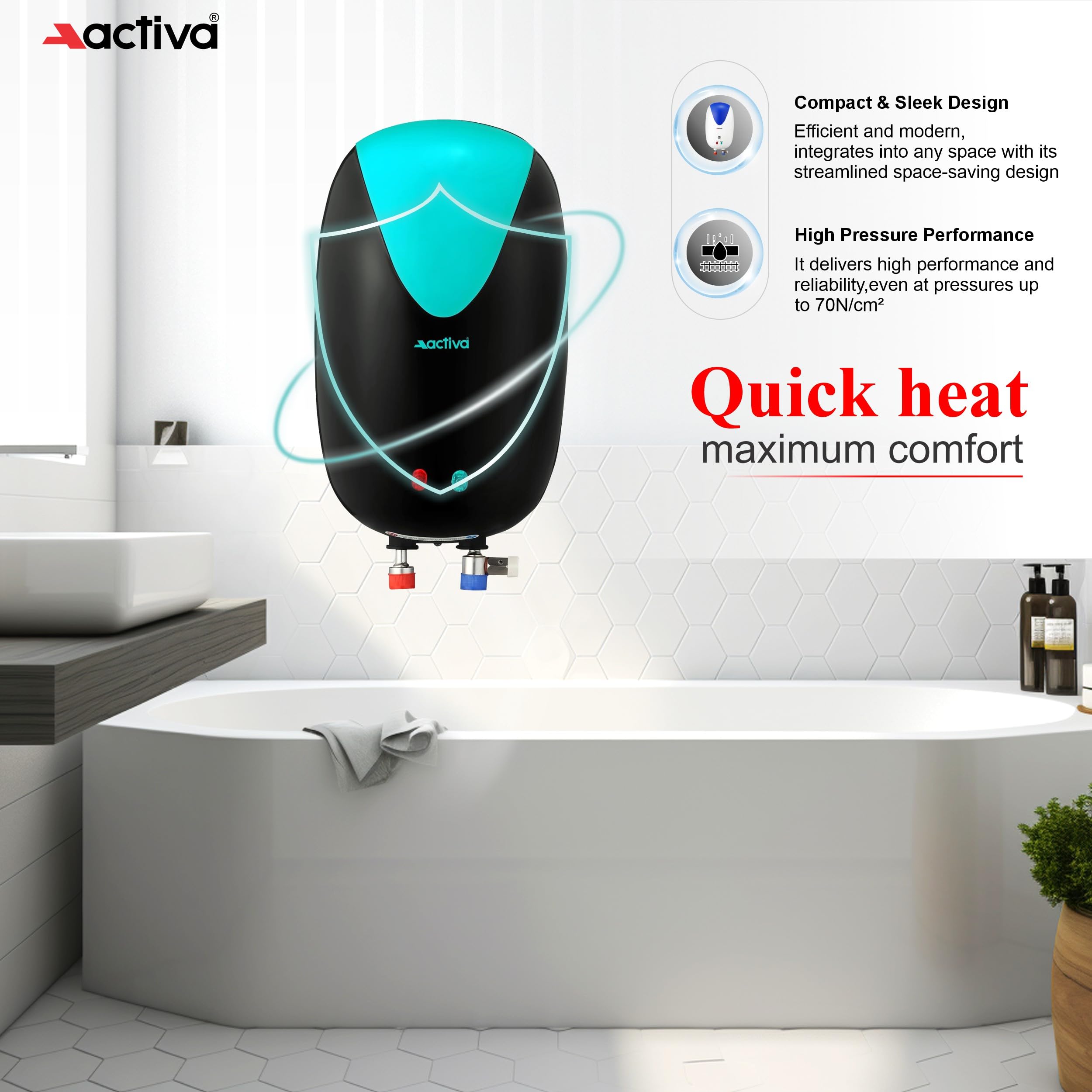 ACTIVA Instant Geyser 3 LTR 3 KVA Special Anti Rust Coated Tank, Full Abs Body Premium geyser Come With 5 Years Warranty (CD Green & Black),Wall