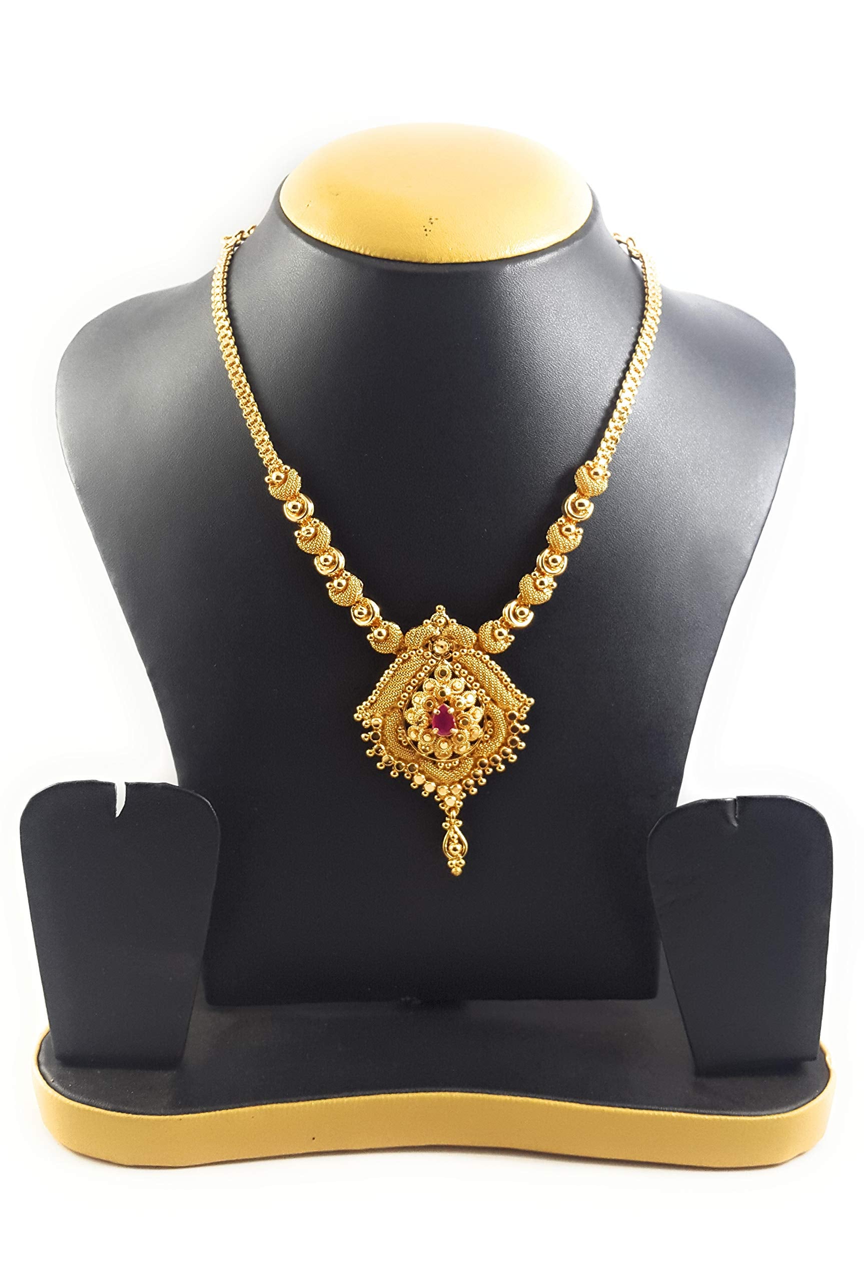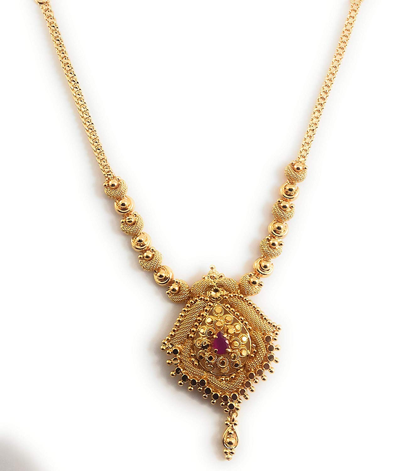AFJ GOLD Gold 1 Gram Micro Gold Plated & Copper Traditional Designer Fashion Jewellery Stone Necklace for Women & Girls (LTT/HALL-04) (Yellow)