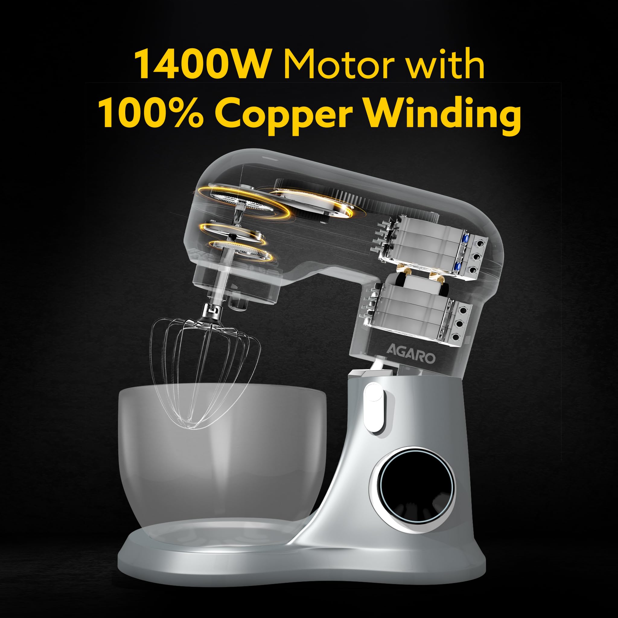 Brand: AGAROColor: DARK GREYFeatures: 1400 watts powerful motor comes with 100% copper motor providing strong planetary movement for optimal mixing... Read more