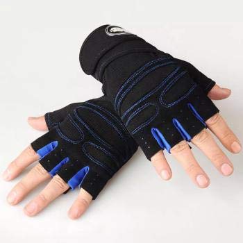 Alexvyan Imported Long Strap Gym and Fitness Sports Protective Half Finger Hand Riding, Cycling, Bike Motorcycle Gloves for Men and Boy (Black and Blue, Universal)
