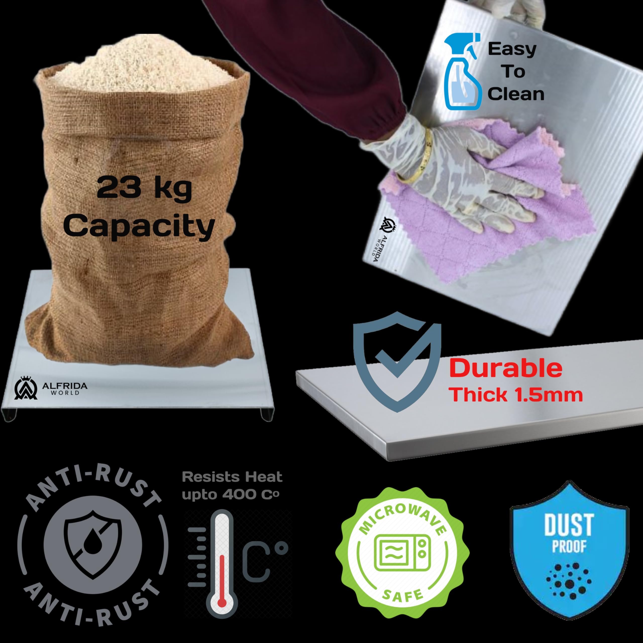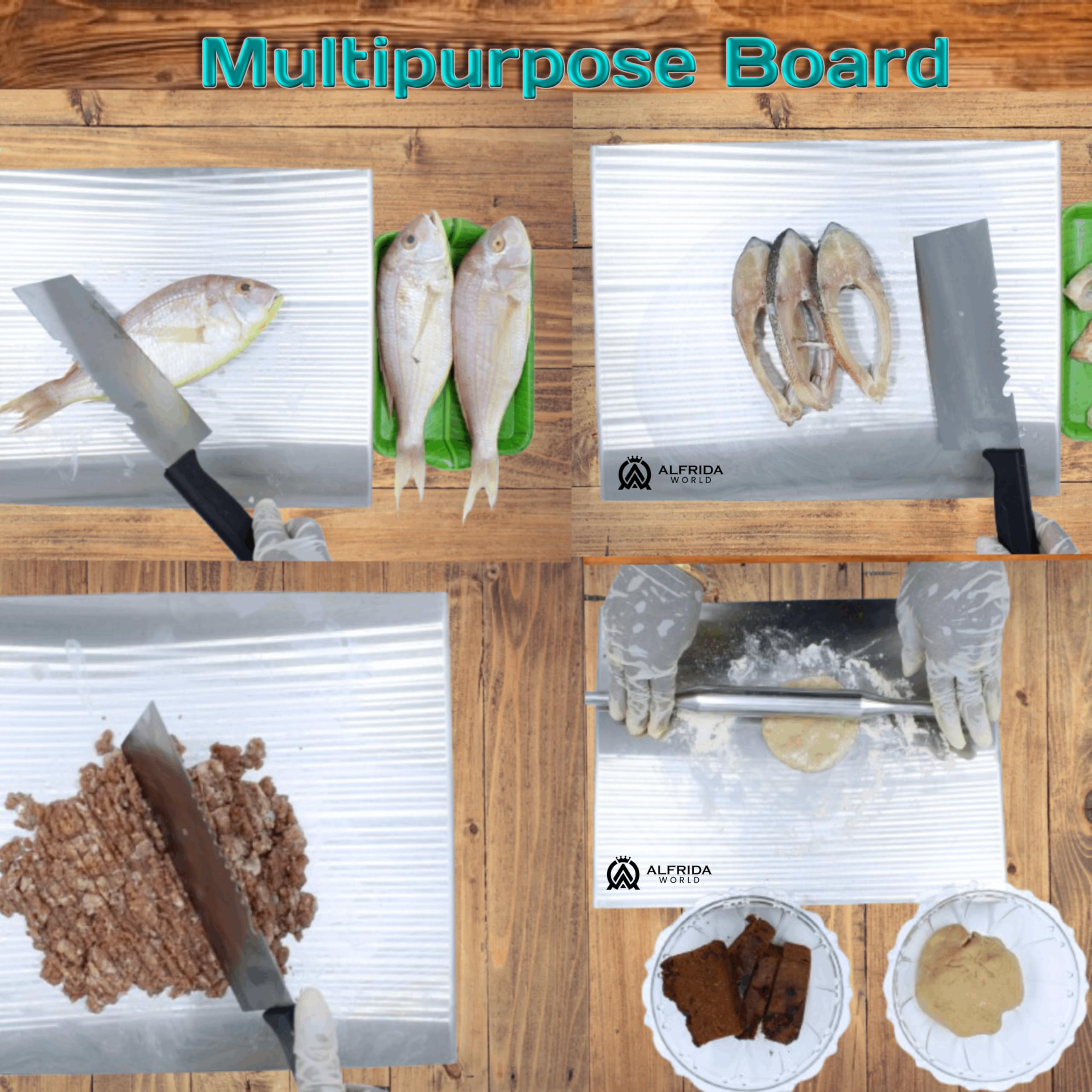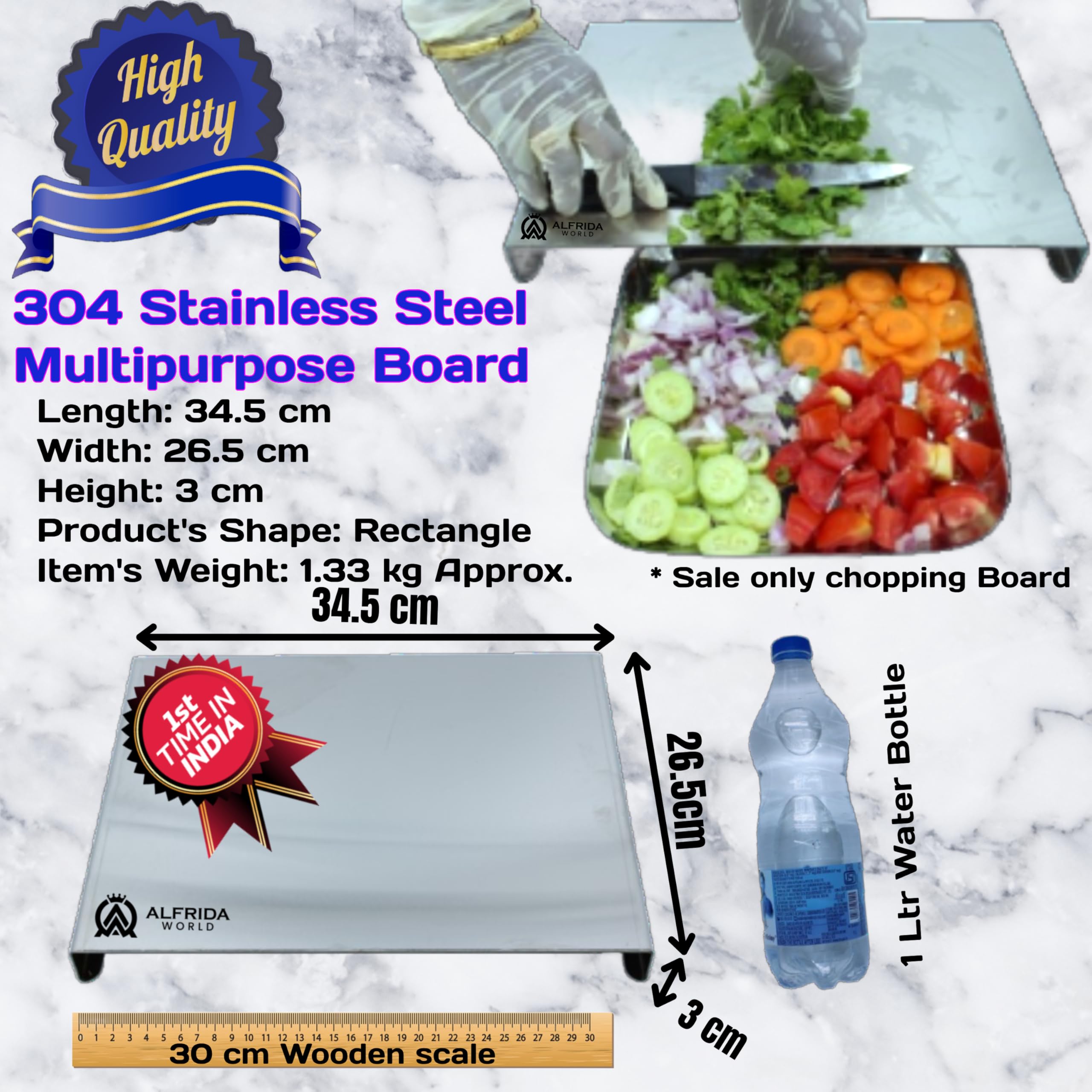 ALFRIDA WORLD Steel Chopping Board – 1st Time in India -New Launch | ISO Certified Sockist’s 304 Grade Stainless Steel Chopping Board Large | Heavy-Duty Chopping Board Steel | Life Time Warranty (L)