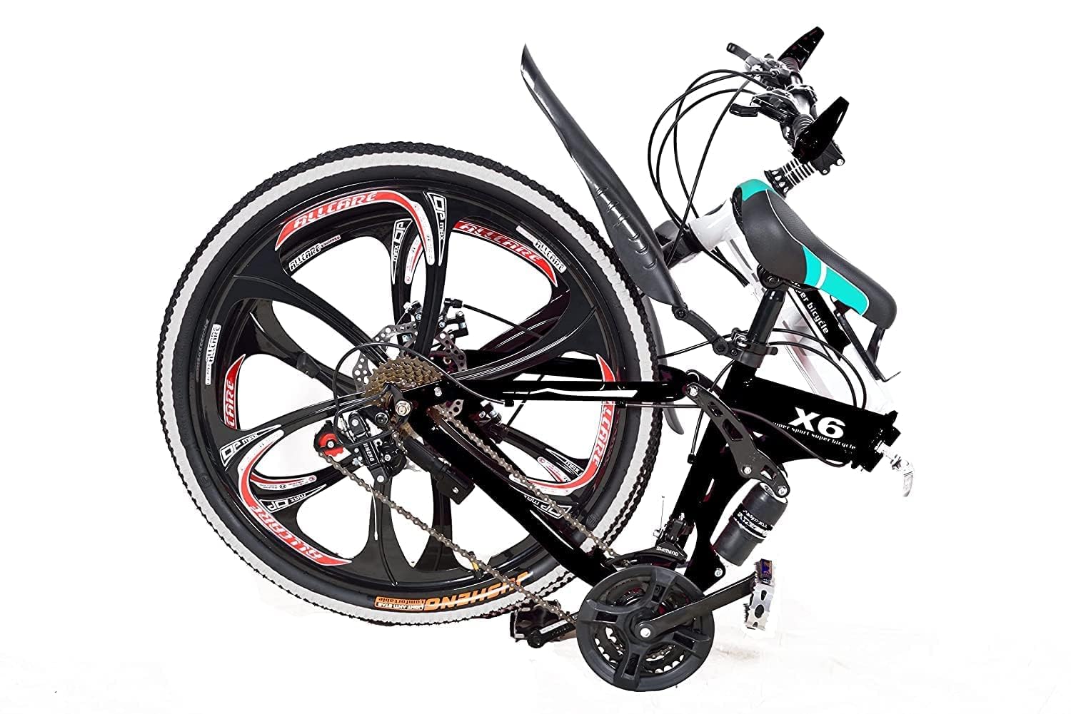 Amaze Kai Dual Suspension Bikes Latest Bmv Foldable Gear Cycle for Men with 21 Speed Gear 6 Spoke | Folding Mountain Bike with Double Disc Break & Mac Wheel, 26 Inch, (Black)