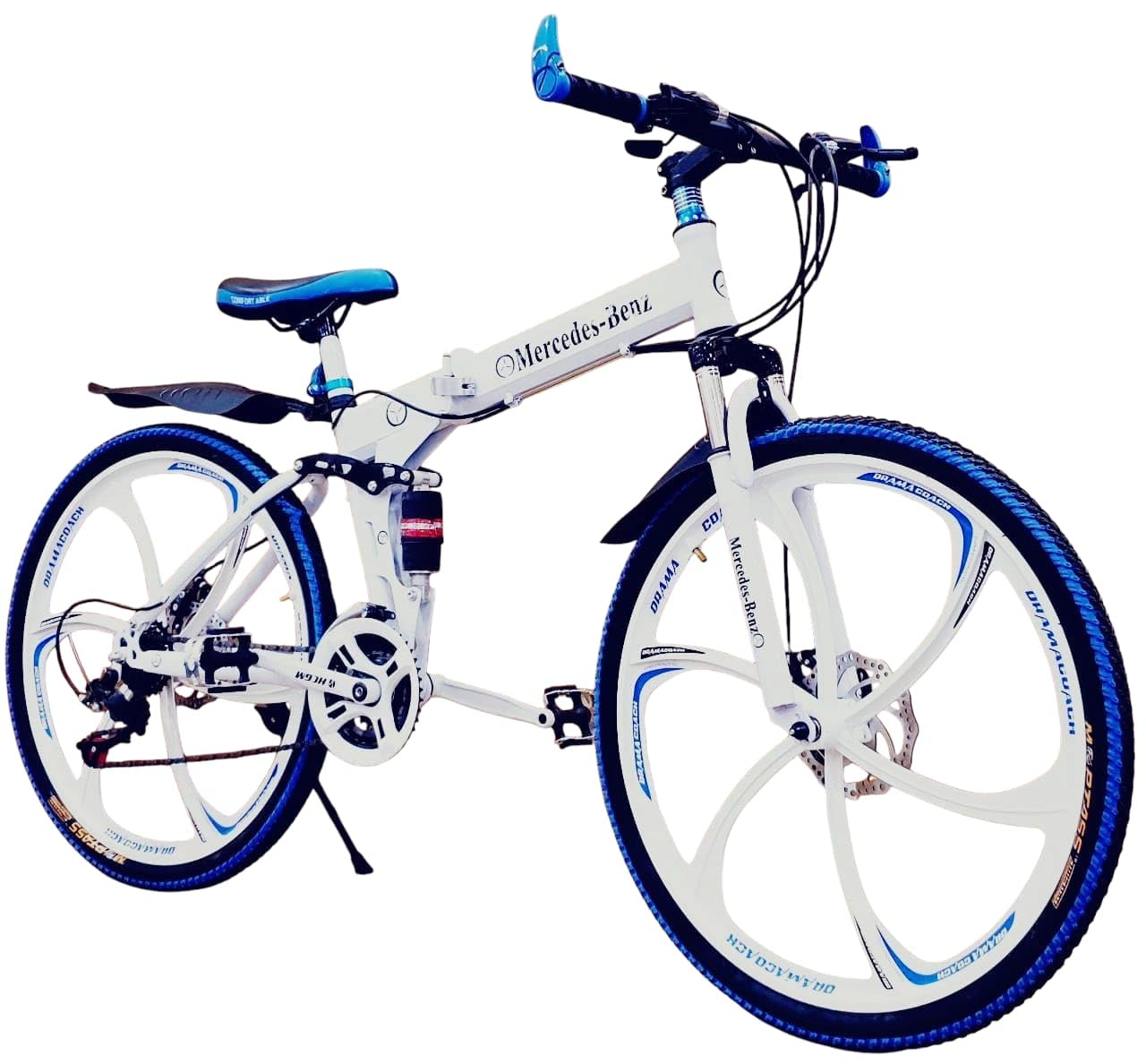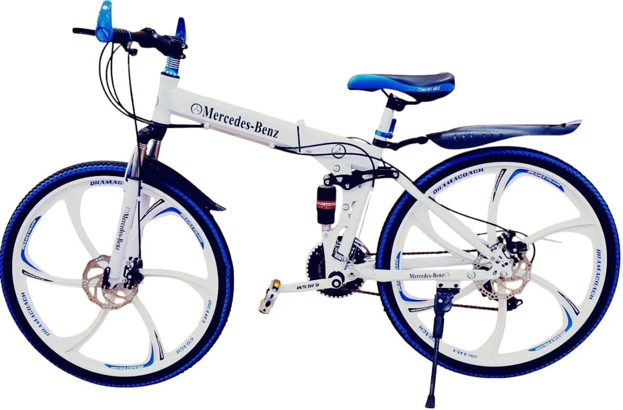 Amaze Kai Dual Suspension Bikes Latest Bmv Foldable Gear Cycle for Men with 21 Speed Gear 6 Spoke | Folding Mountain Bike with Double Disc Break & Mac Wheel, 26 Inch, (White)