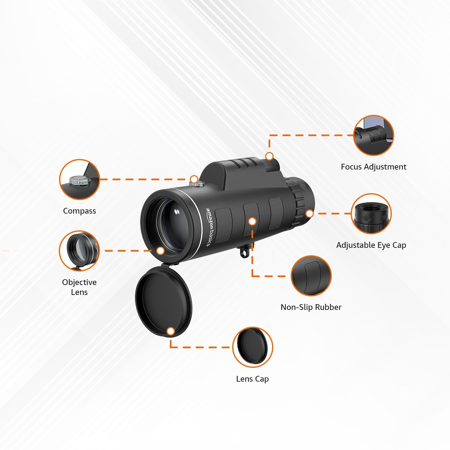 Amazon Basics | 40X60 Magnification Zoom HD Monocular | for Adults and Children | High Power Gadget | Outdoor Telescope with Built-in Compass