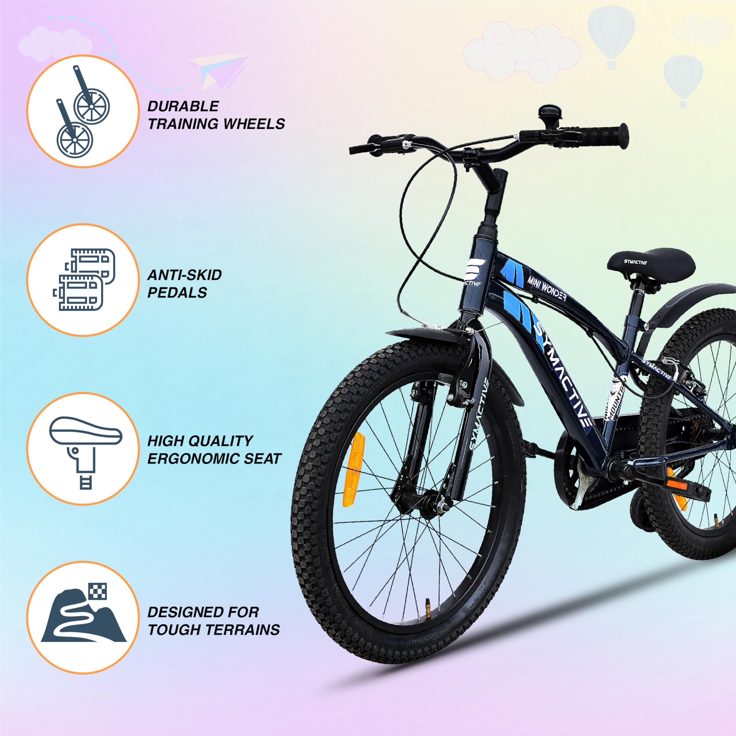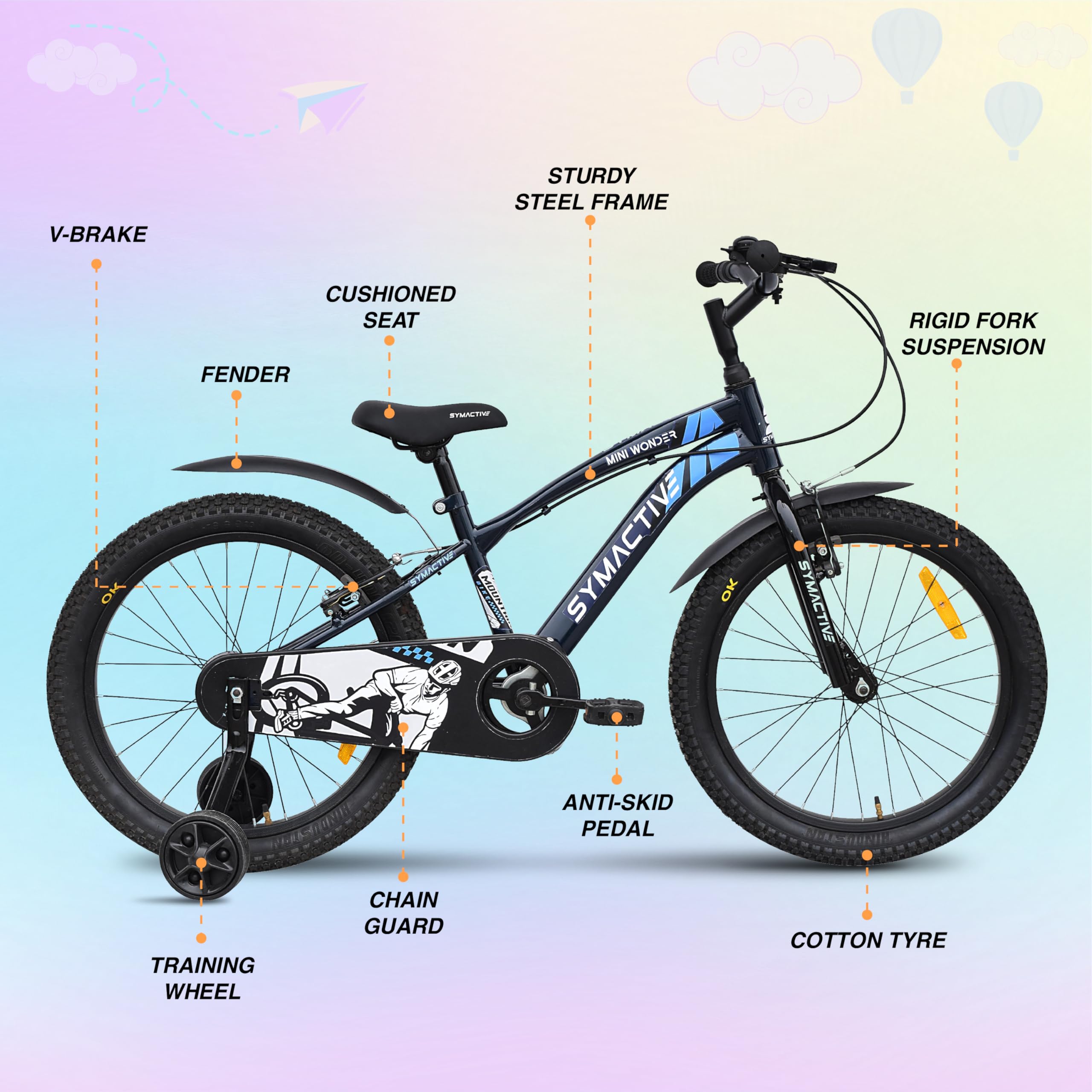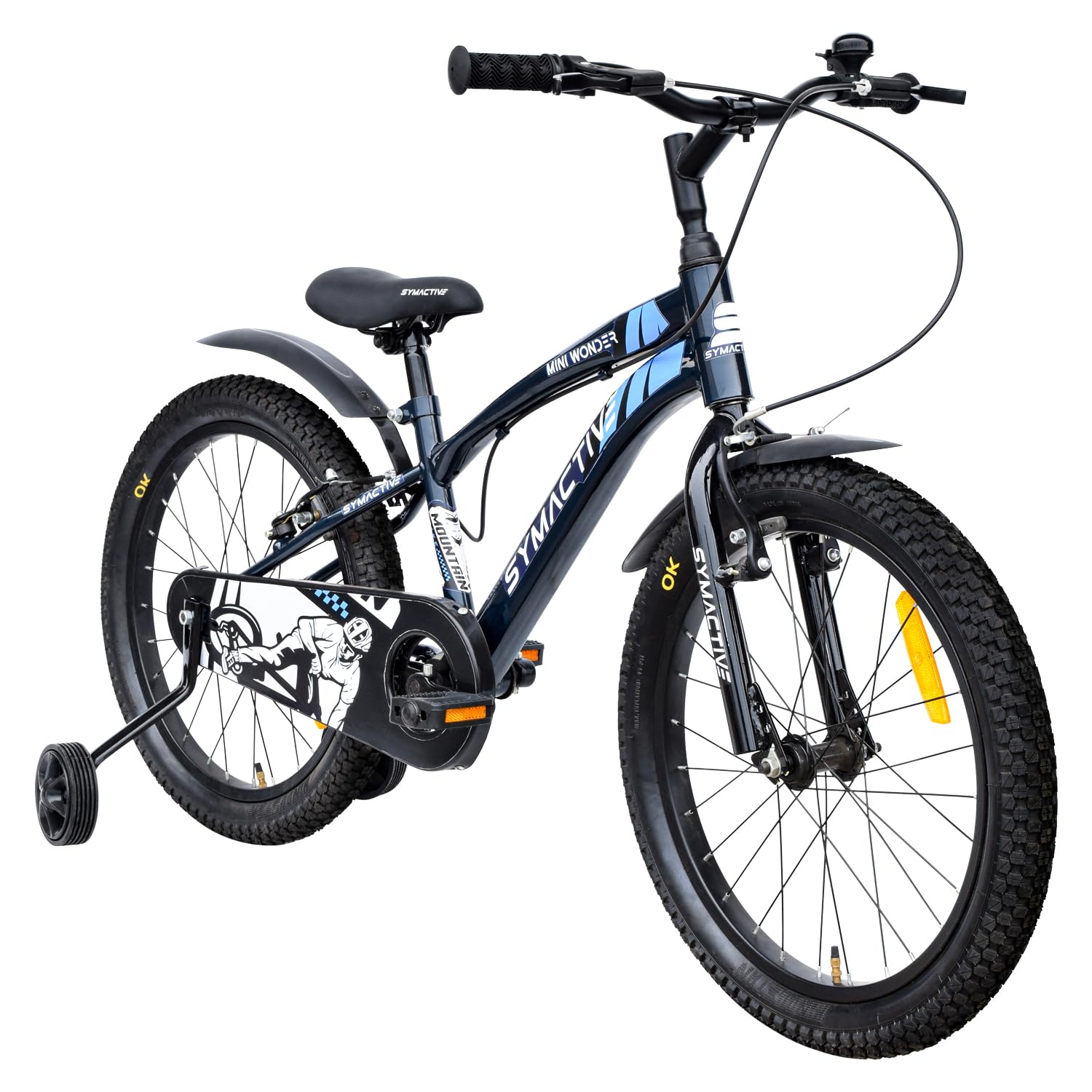 Amazon Brand - Symactive Mini Wonder, 20T Single Speed Kids Cycle/Bicycle/Bike, V-Brakes, Rigid Suspension, Alloy Steel Frame Size: 11.5 inch, Age: 5-12 Yr, Steel Rim (Dark Blue, Unisex)