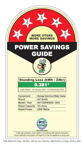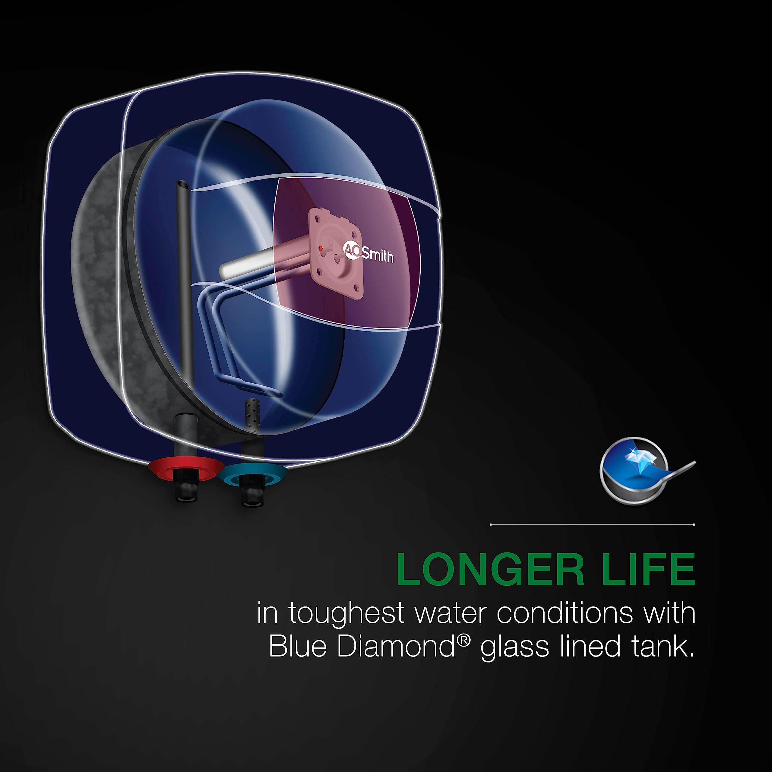 AO Smith Geyser 15 Litre 5 Star Rating (BEE) | Powerful 2KW Heating | Storage Water Heater With 2X Corrosion Resistant Blue Diamond Glass Tank | Warranty: 5 Yr Tank, 2 Yr Comprehensive | HSE-SHS-015