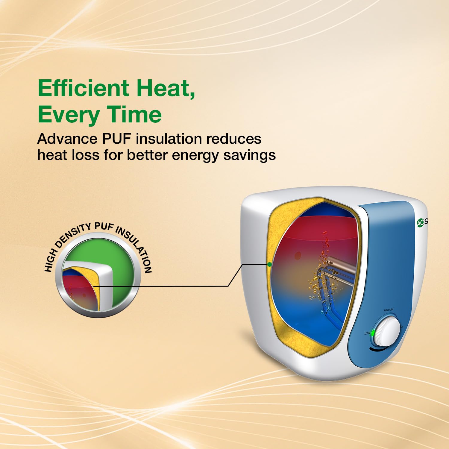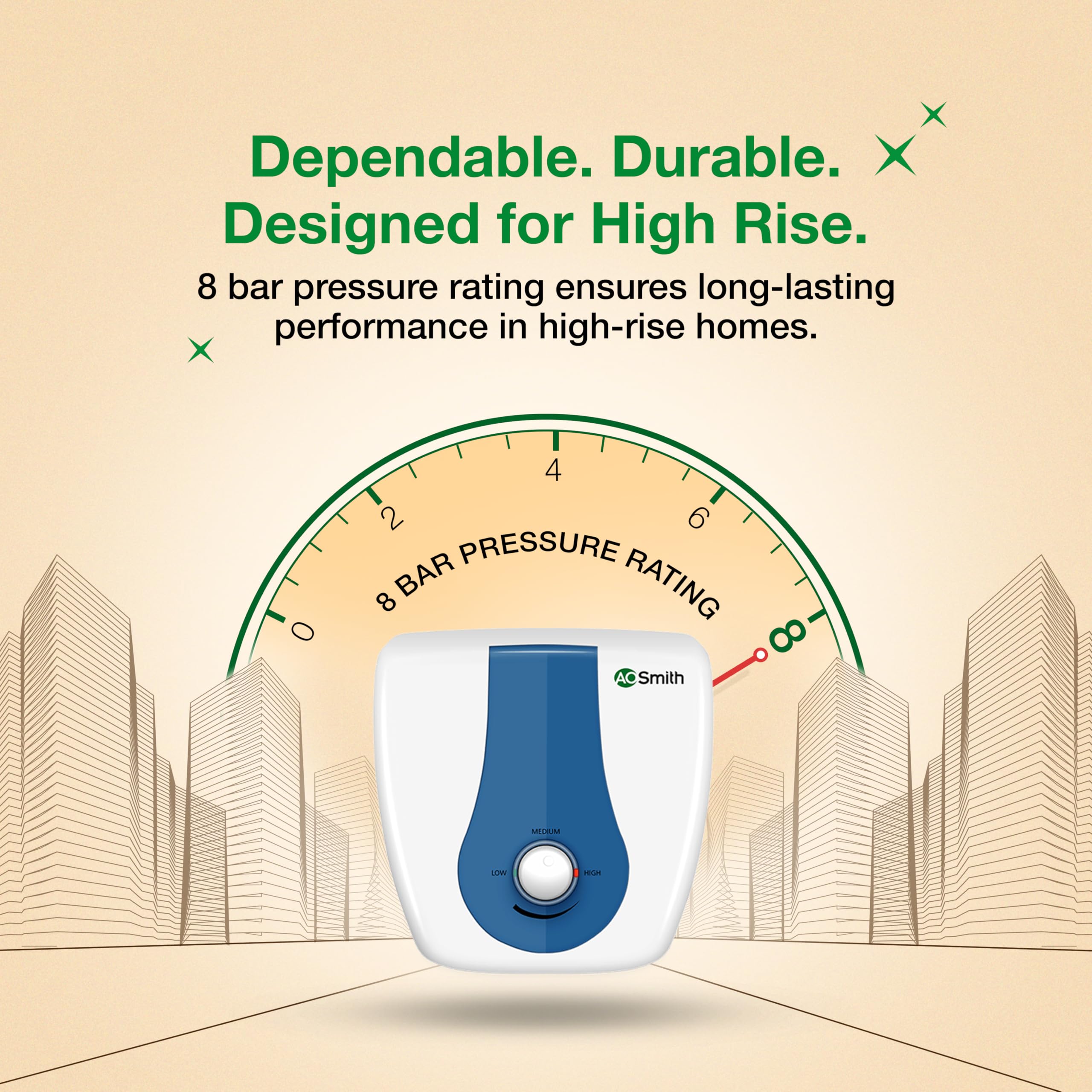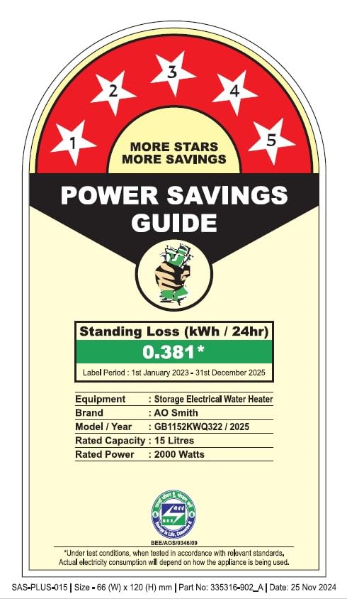 AO Smith Geyser 15 Ltr With 5 Star BEE Rating, Vertical Water Heater | Geyser 15+ Litre For High Rise Building | 7 Year Tank Warranty, 2 Year Comprehensive Warranty | SDS-GREEN-015