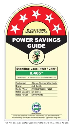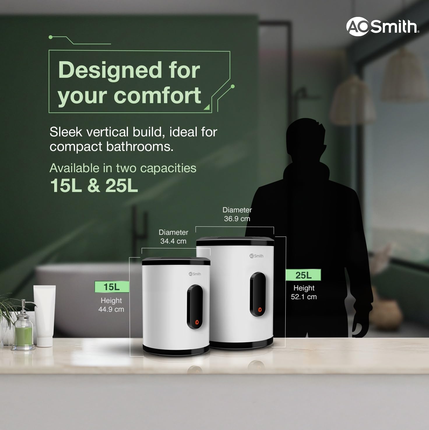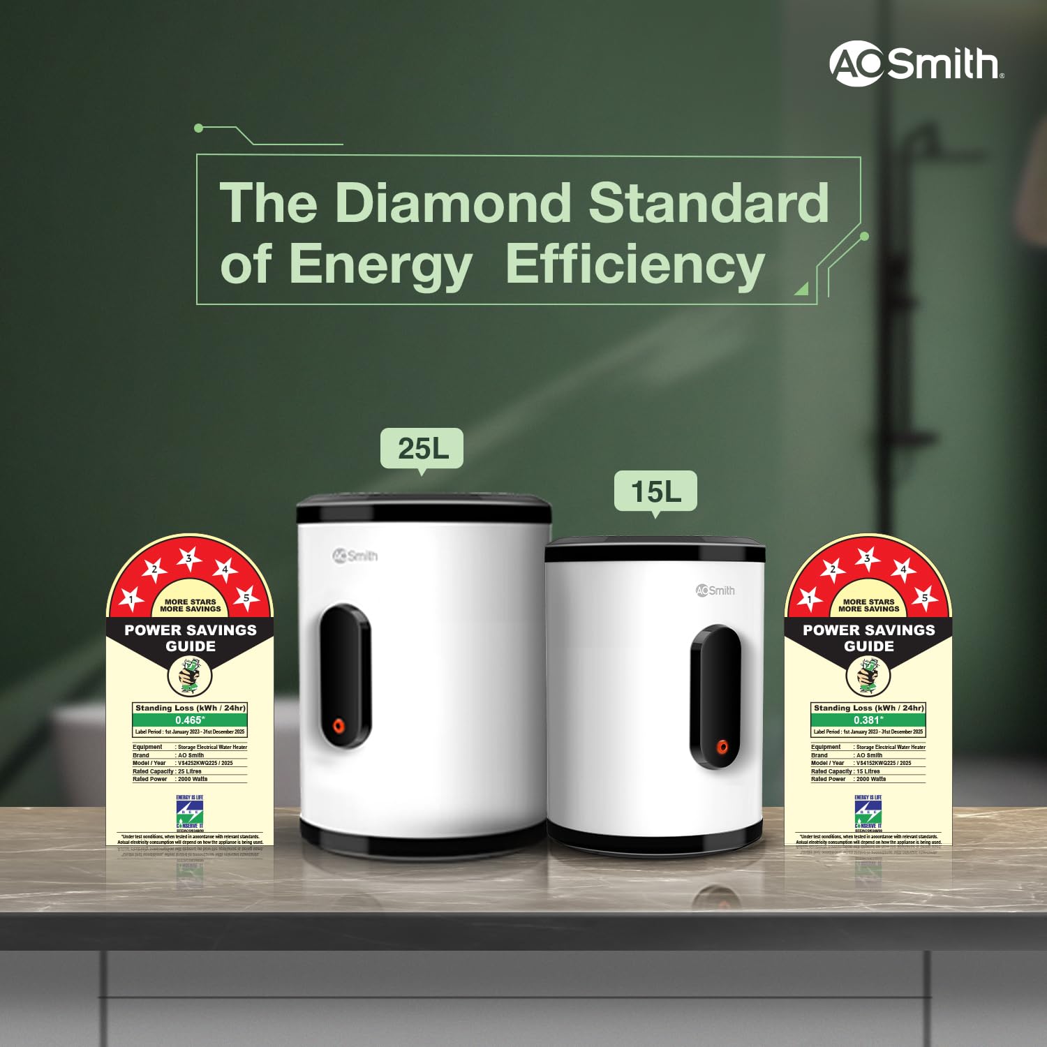 AO Smith Geyser 25 Litre 5 Star BEE Rating | 2KW | Storage Water Heater With 2X Corrosion Resistant Blue Diamond Glass Tank | Warranty: 7 Yr Tank, 3 Yr heating element & 2 Yr Overall | VAS PLUS 25L