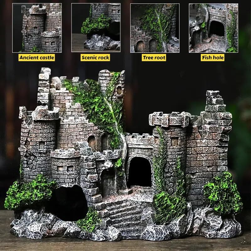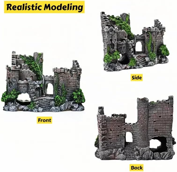 Aquarium Decoration Resin Castle - Fish Tank Supplies Accessories, Eco-Friendly Fish Tank Aquarium Ornament for Natural Looking (L-7 W-2.3 H-5)