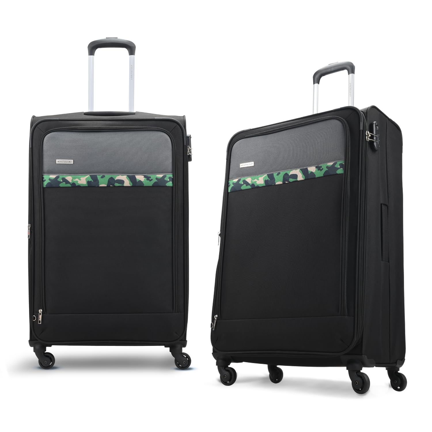 Aristocrat Commander 69Cms Premium Polyester with PVC Coating Soft Sided Check-in 4 Spinner Wheels Medium Black Suitcase