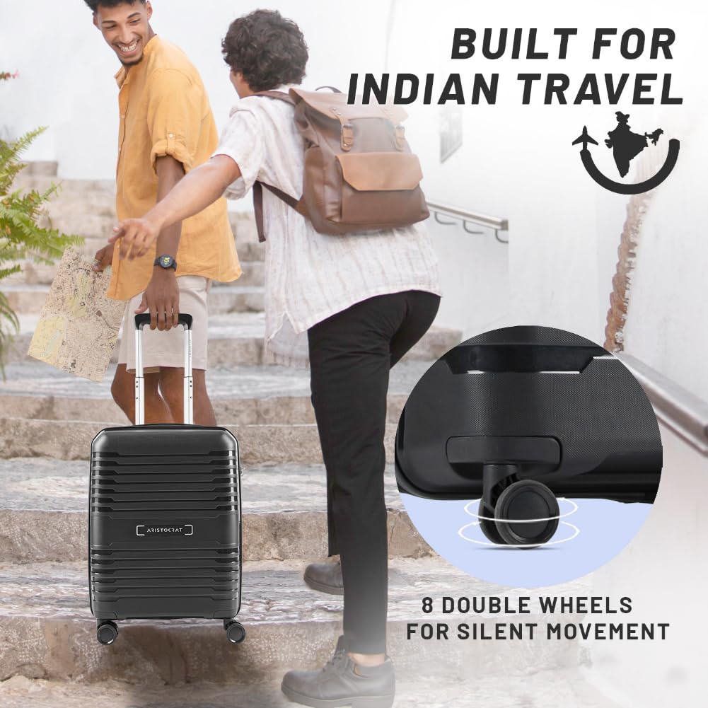 Aristocrat Harbour Cabin Trolley Bag 55 cm | Small | Polypropylene Hardshell Sided Luggage | Smooth 8-Wheel Suitcase | Combination Lock with Sturdy Zipper| 7-Year Warranty - Unisex (Black)