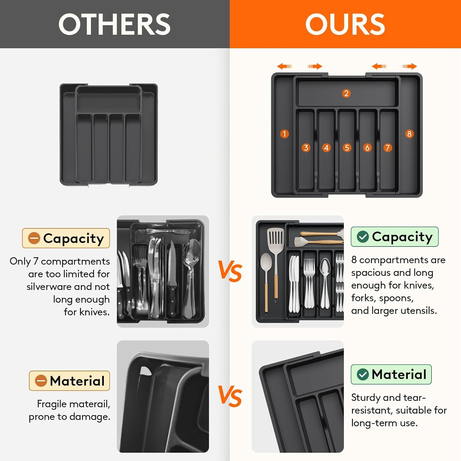 Brand: ArojaColor: blackFeatures: Large Capacity: Organize your kitchen drawer and make more space with the this silverware organizer. Comes with... Read more