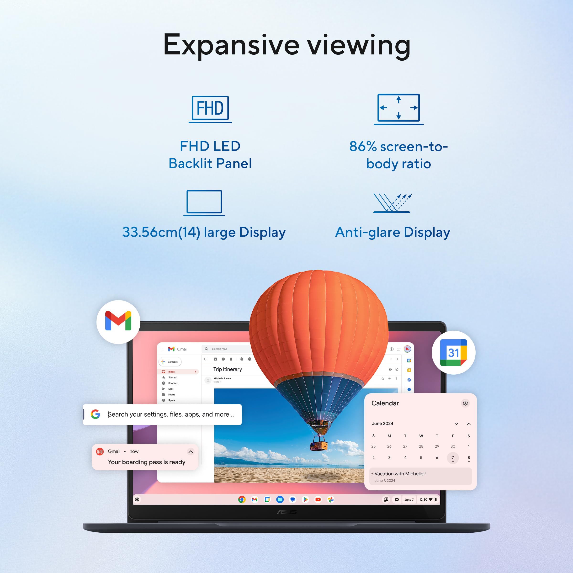 ASUS Chromebook CX1405, Intel Celeron N4500, 8GB RAM, 128GB, FHD 14"(35.56cm), Chrome OS, Quiet Blue, 1.4Kg, CX1405CKA-S60394, Intel UHD Graphics, 42WHrs, Thin & Light Laptop