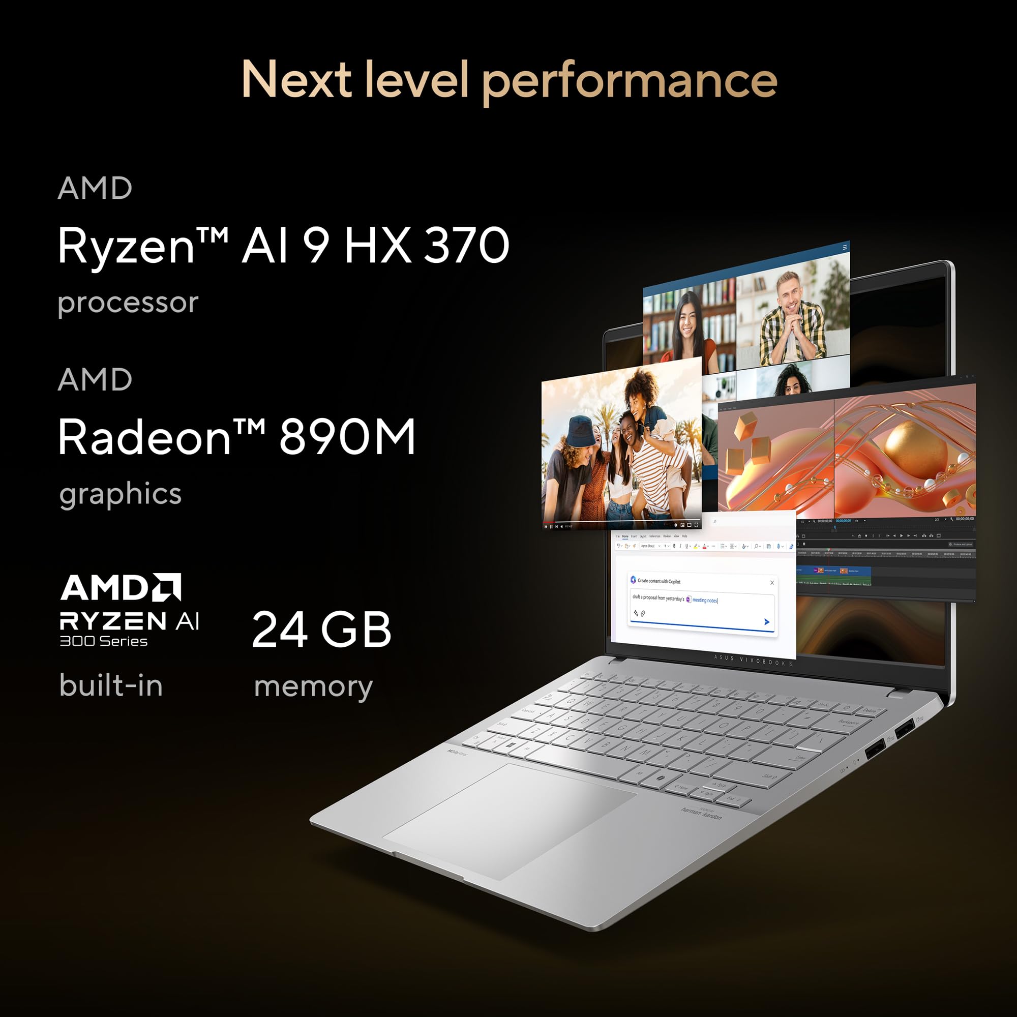 ASUS Vivobook S14,AMD Ryzen AI 9 HX 370,Copilot+ AI PC(AMD Radeon 890M iGPU/50TOPS/24GB RAM/512GB SSD/3K OLED/14/120Hz/Backlit Keyboard/Windows 11/Office 2021/Cool Silver/1.30 kg) M5406WA-PP962WS