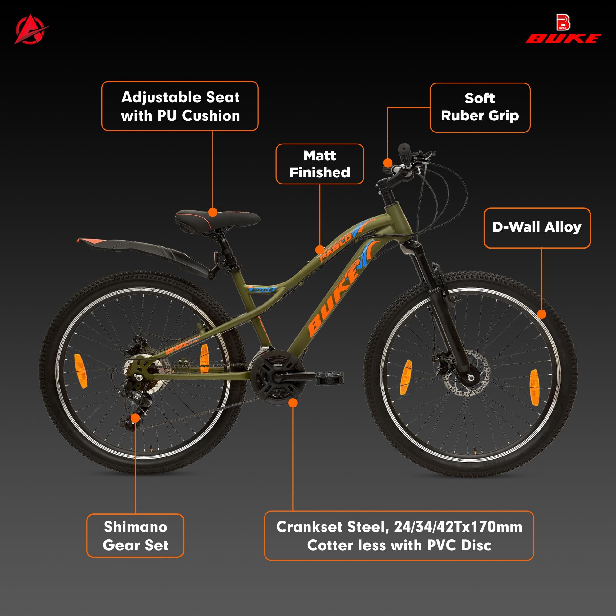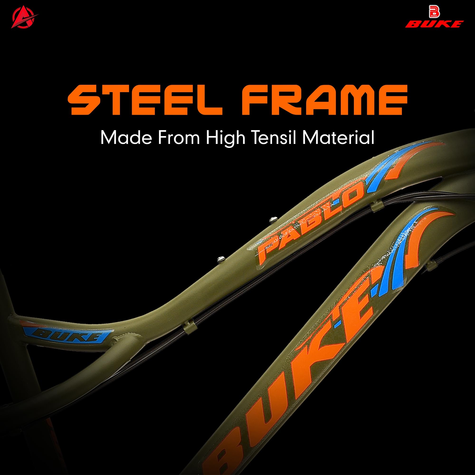 Avon Buke Pablo 26T MTB Bicycles for Men, 21 Shimano Gear |Steel Frame: 18" inch|Front Suspension|Disc Brake & Double Wall Alloy Rim/Short Bend/ (Matt Finish Army Green)