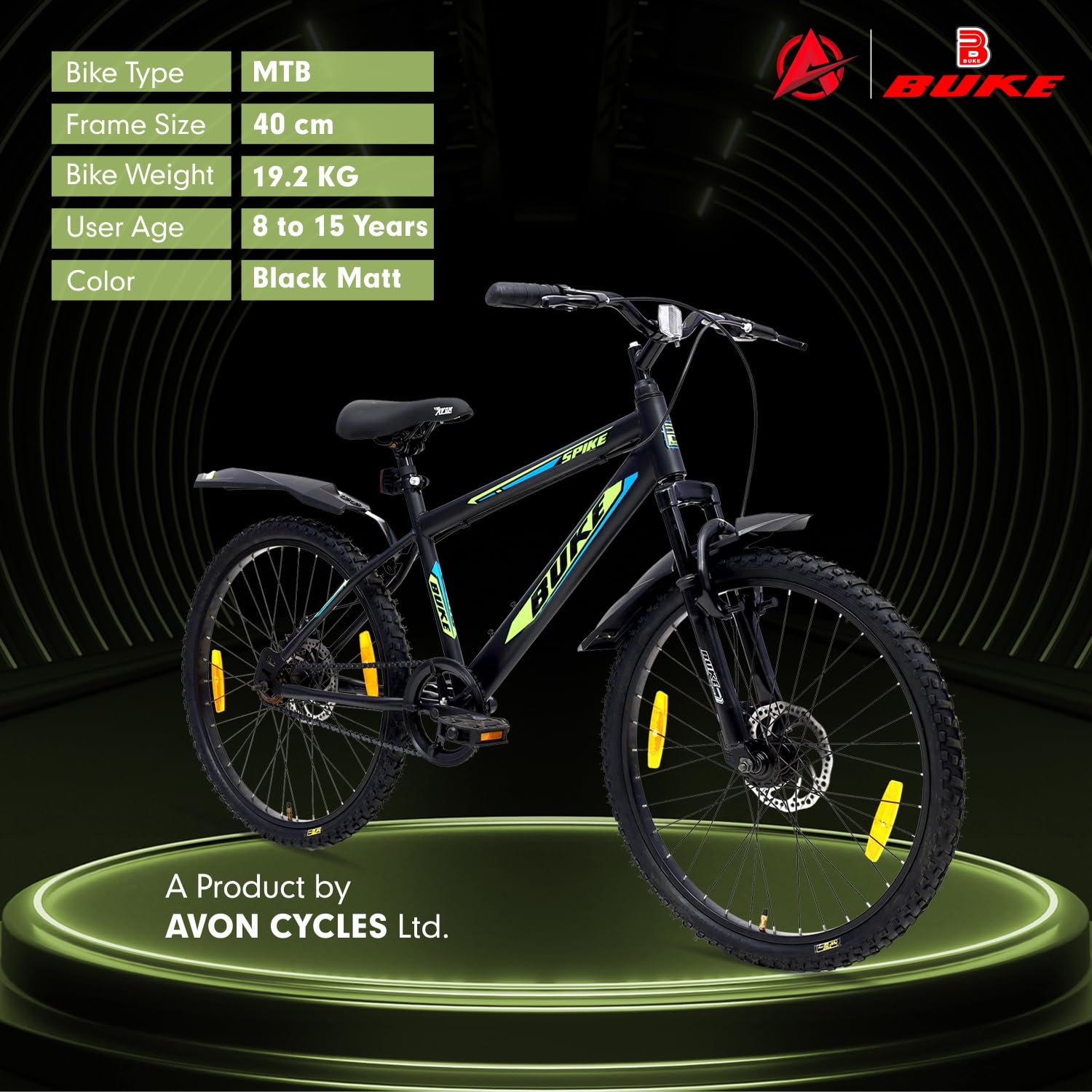 Avon Buke Spike 24T MTB Bicycles for Men|Tyre: 24 inches, Frame Size: 15.9'' Steel |Chainwheel with PVC Disc, Short Bend | Suspension Fork & Front & Rear Disc Break (Matt Black)