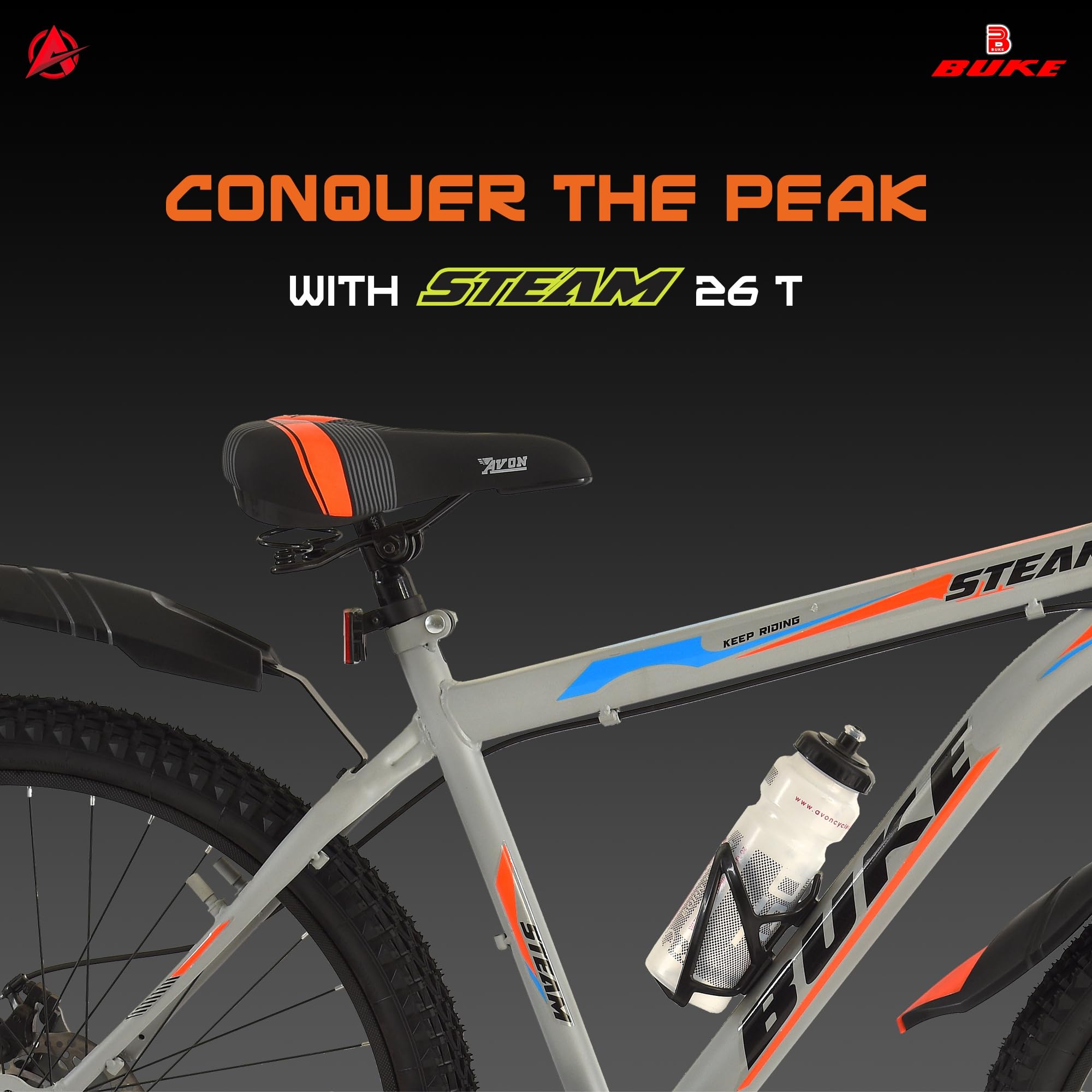 Avon Buke Steam Cycle for Men 26T MTB Adult Bicycle, Wheel Size: 26" Inch |Front High-Tensile Steel Frame 18 Inches | Suspension, Short Bend, Disc Brake and Double Wall Alloy (Matt Gloss Finish Grey)