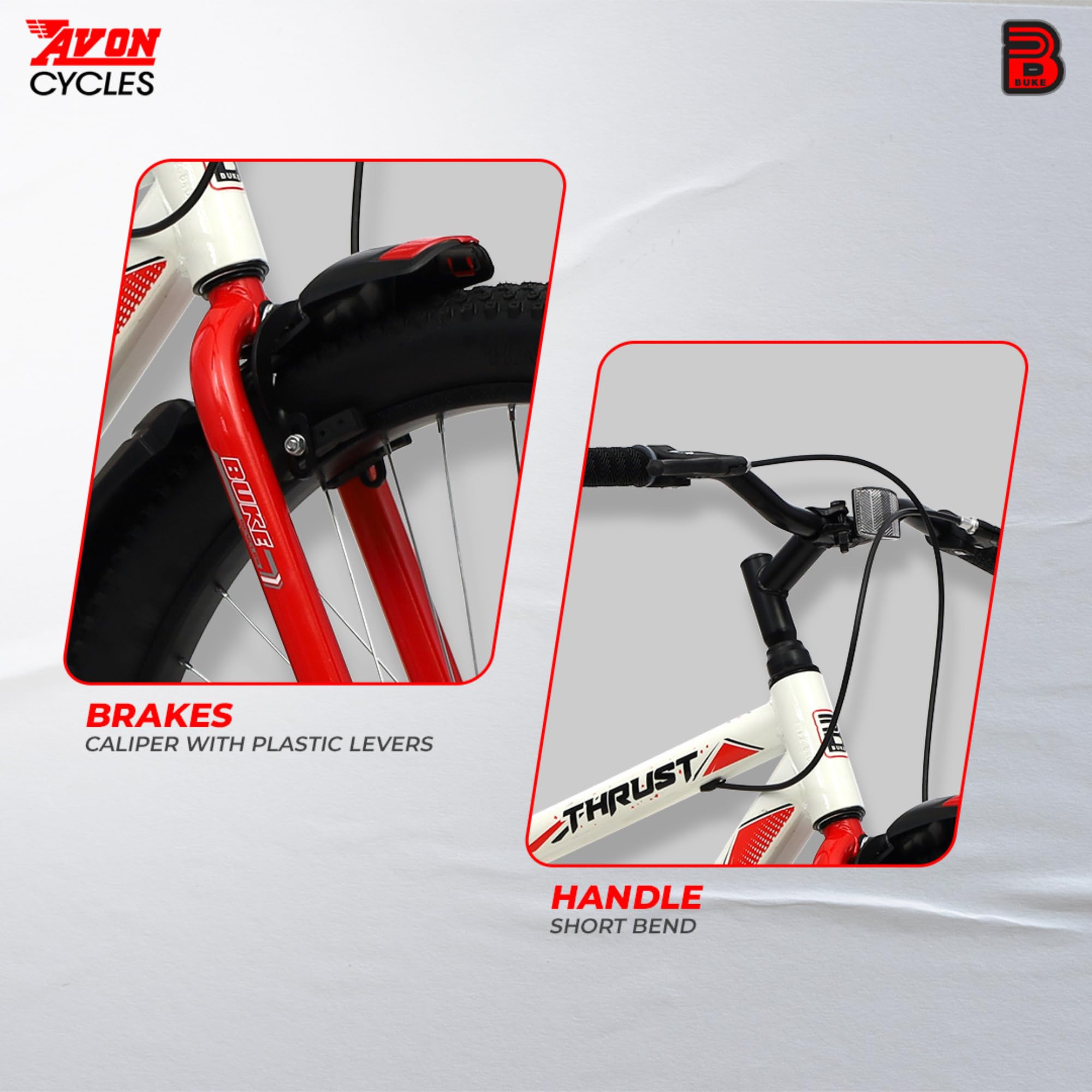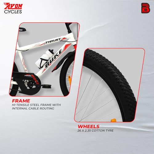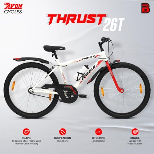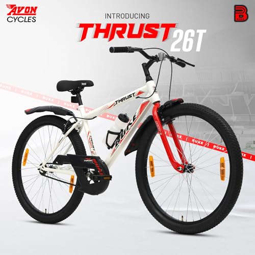Avon Buke Thrust 26T MTB Bicycles for Adults|Wheel Size:26 inches|Steel Frame:17.5 inches Rigid Fork, Caliper Brake, Steel Rim, Mudguards & Bottle Stand|Short Bend, Matt Gloss Finish(White)