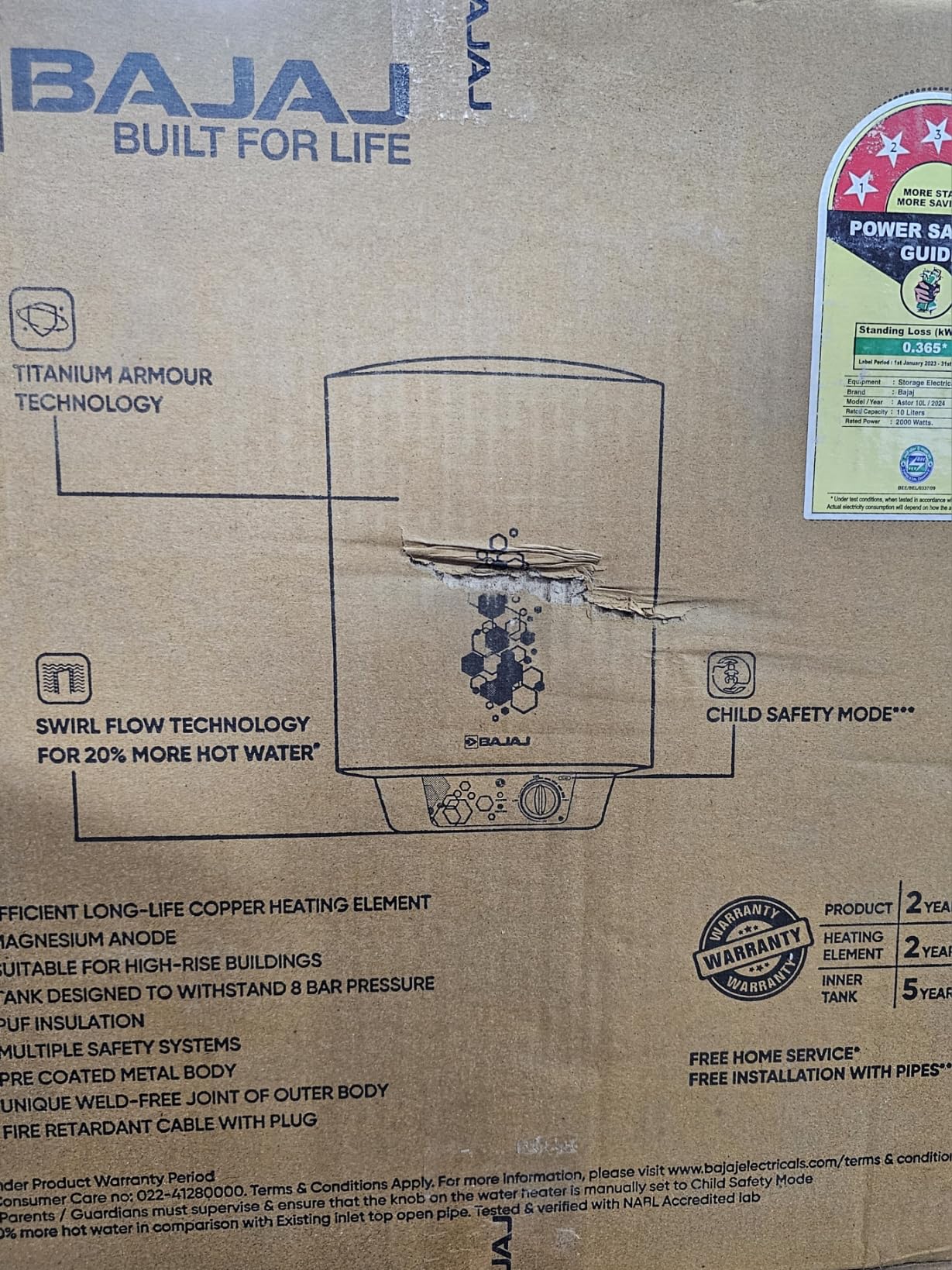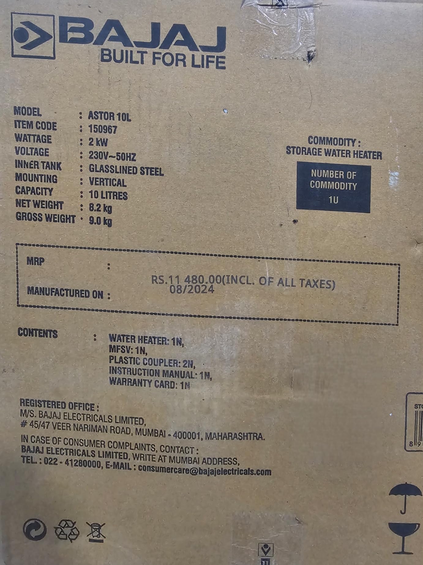 Bajaj Astor 10 Ltr Storage Water Heater | Water Heating With Swirl Flow Technology | Child Safety Mode | Inner Tank With 10 Years Warranty | Free Installation 【Grey & White】