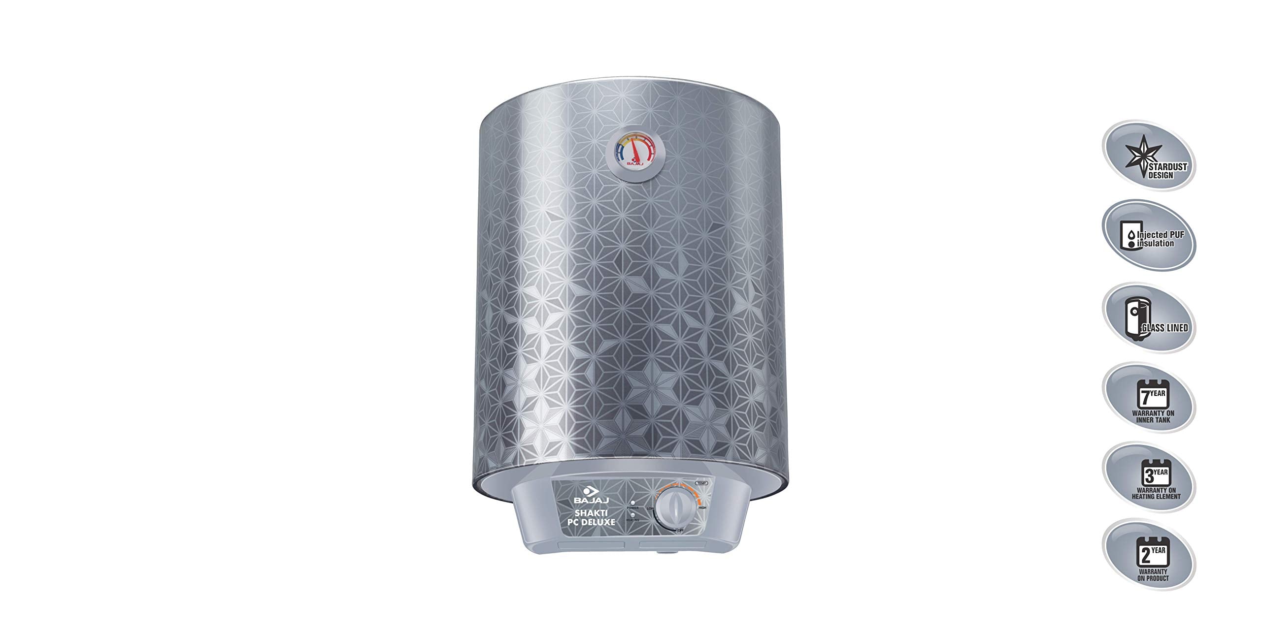 Bajaj Shakti PC Deluxe Storage 15 Litre Vertical Water Heater | BEE 4 Star Rated Geyser for Bathroom & Kitchen | Swirl Flow Technology | Titanium Armour Technology | 2 Years Warranty 【Grey】