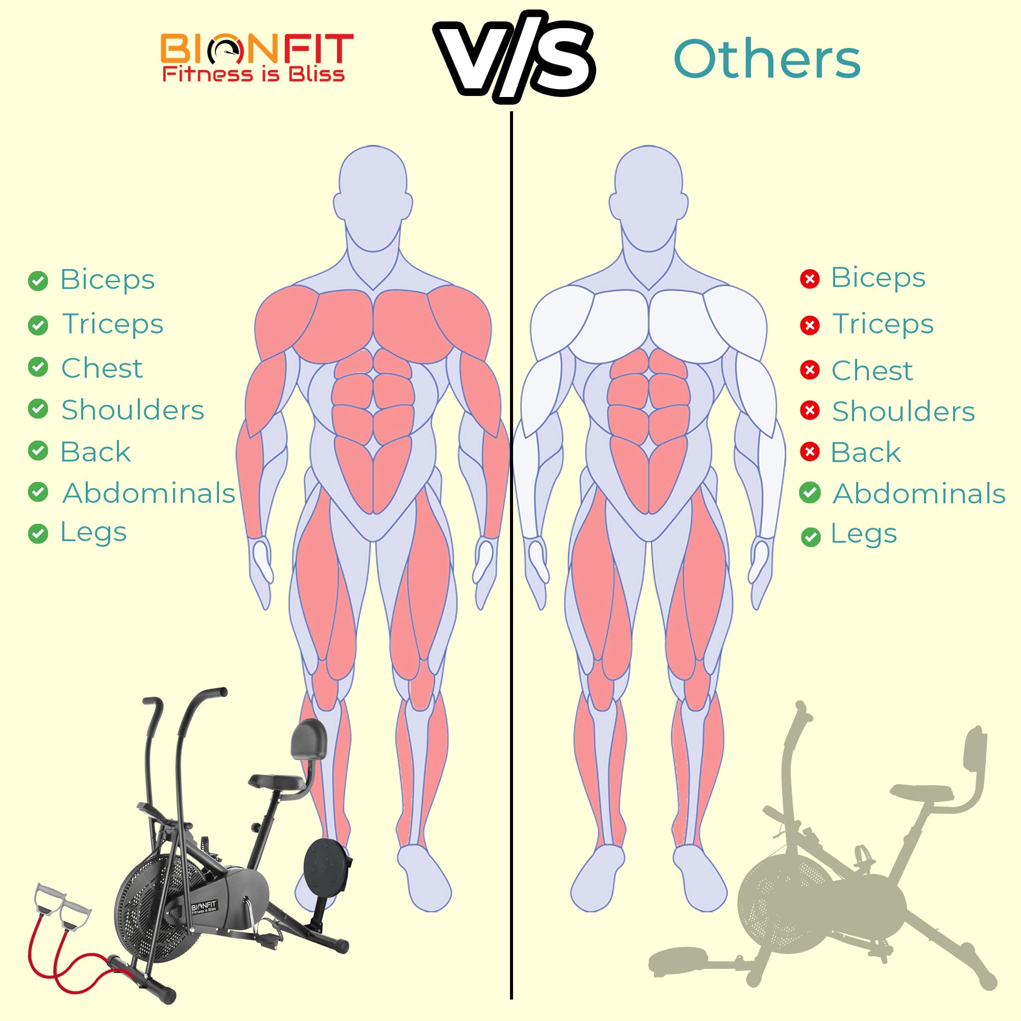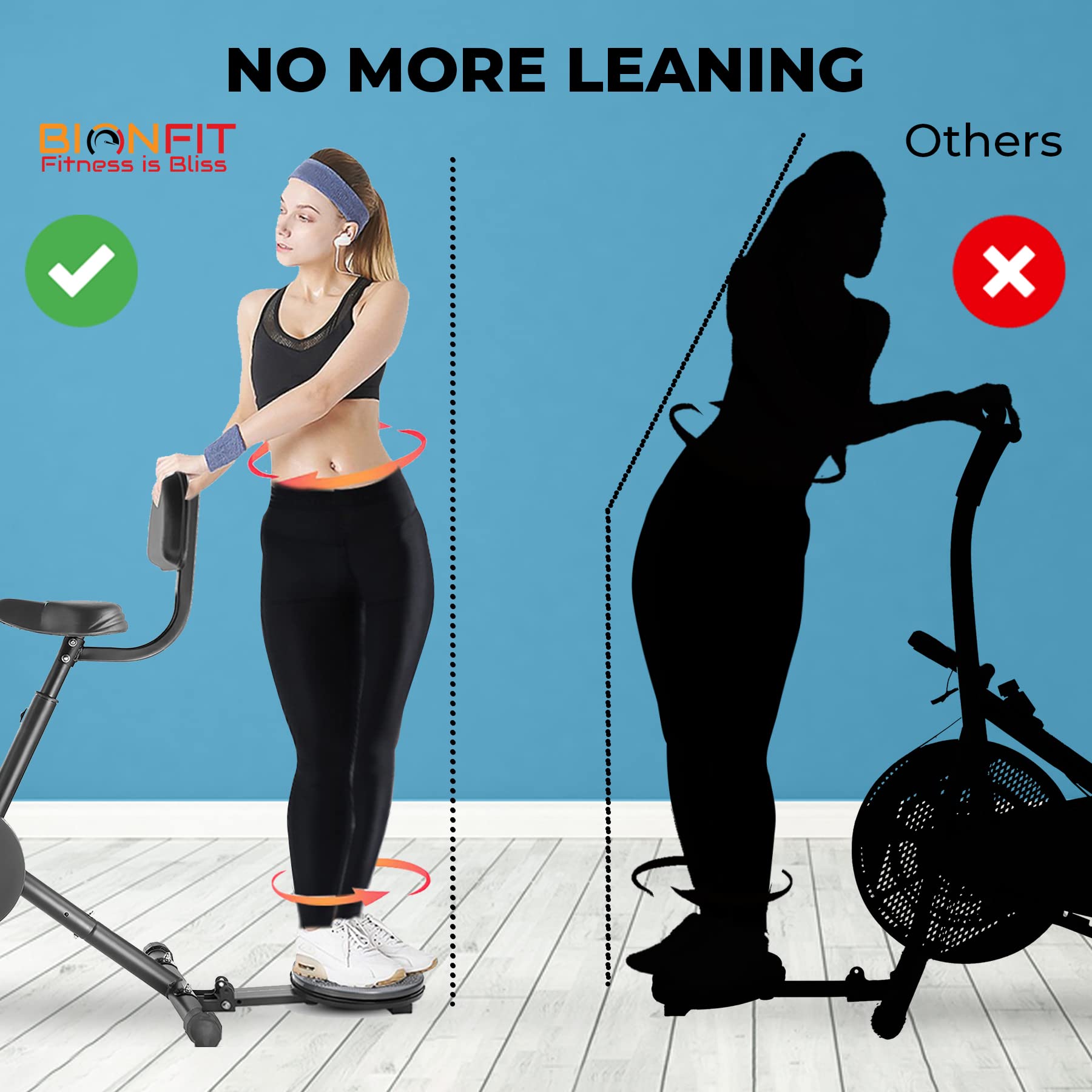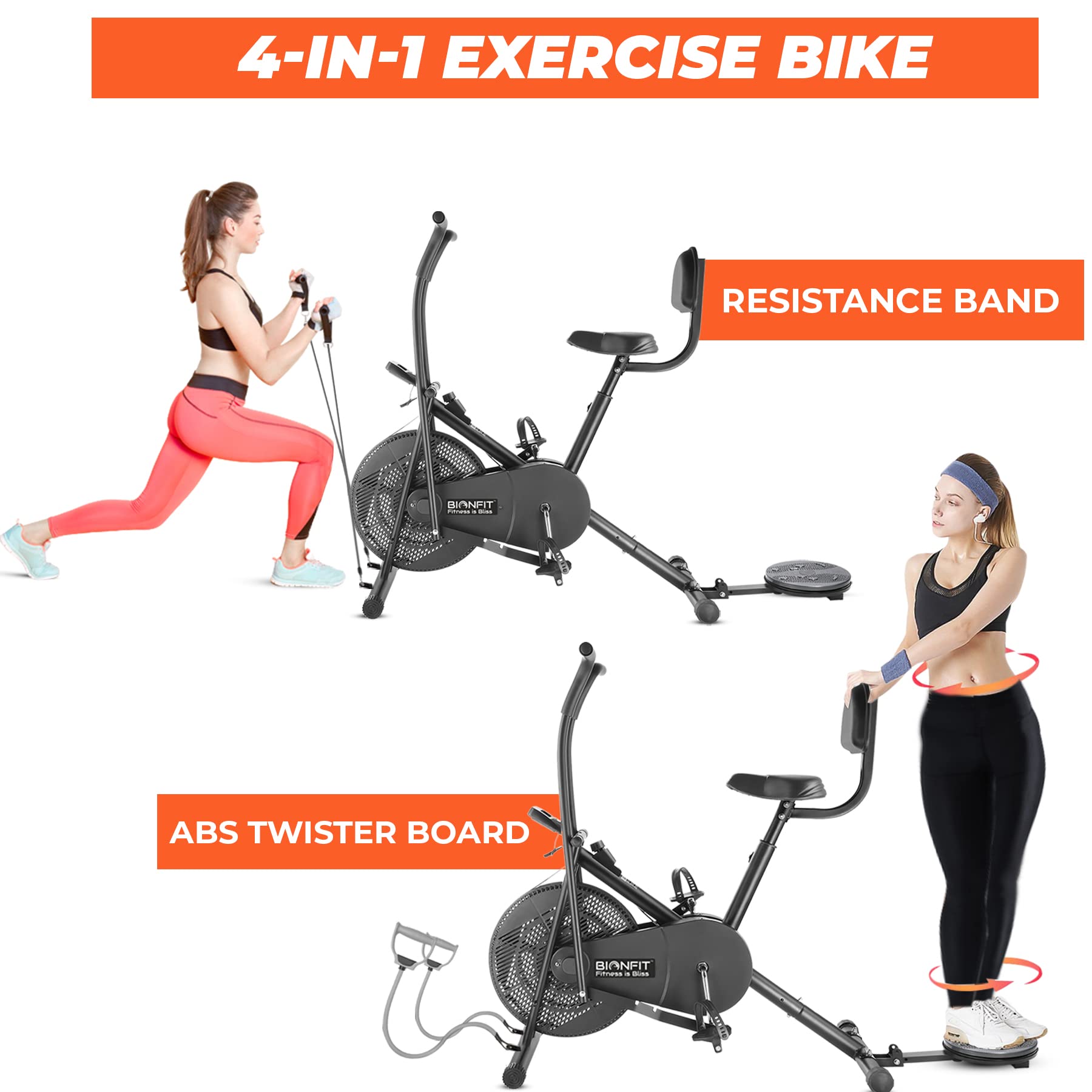BIONFIT Moving Handle Exercise Gym Cycle | 2 Year Warranty, Air Bike with Attached Resistance Band, Abs Twister, Back Support, upright cycle for Home Fitness | Free Virtual Online Installation Support