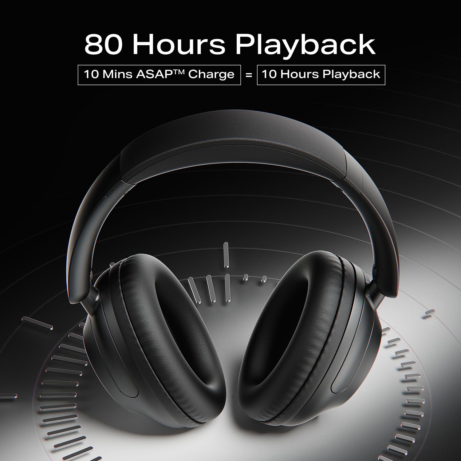 Boat New Launch Rockerz 650 Pro, Touch/Swipe Controls, Dolby Audio, 80Hrs Battery, 2Mics ENx, Fast Charge, App Support, Dual Pair, Bluetooth Over Ear Headphones with Mic (Iris Black)