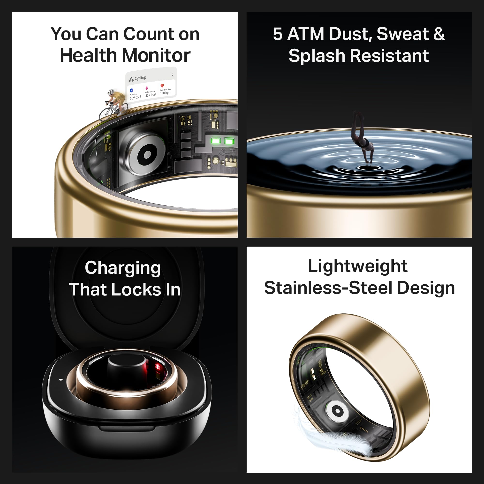 boAt New Launch SmartRing Active Plus, Auto Heart Rate, Sleep, SpO2, Stress & Skin Temperature Monitor, Stainless-Steel Build, Lightweight, 30-Days Battery, Magnetic Charging Case(8, Rose Gold)
