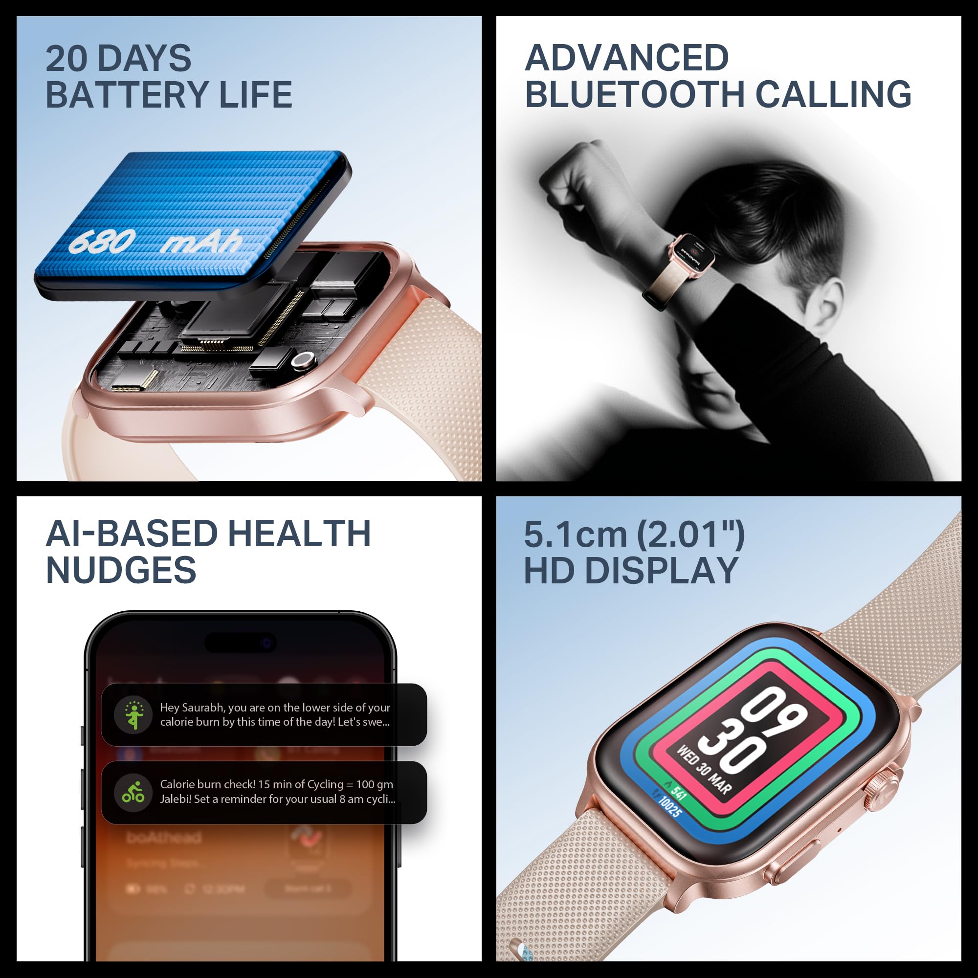 boAt New Launch Storm Infinity Max, 20 Days Maximum Battery, Biggest Battery Capacity Ever! 2.01" (5.1cm) Display, Functional Crown, AI Nudges, BT Calling, Smart Watch for Men & Women (Pink)
