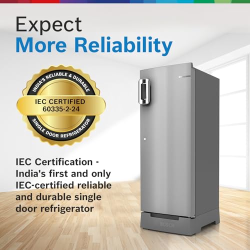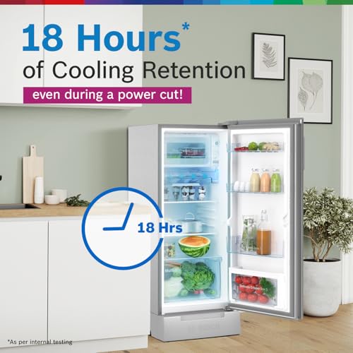 Bosch SmartChoice 207 L, 3 Star, Single Door Refrigerator with Industry's largest base drawer & veg box*(CST20S23PI,Fine Steel) |18 Hr Cooling Retention, 2.5x Faster Cooling, smart inverter compressor