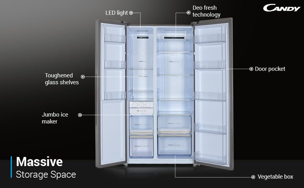 Brand: CandyColor: Shiny SteelFeatures: Side By Side Frost-Free Refrigerators: With 100% Convertible fridge space and regulate temperature settings ranging from... Read more