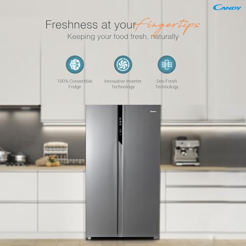 Candy 602 L Frost Free Side by Side Refrigerator with 100% Convertible Technology, Digital Control Panel and Magic Convertible Cooling 2-door (Shiny Steel, CSS6600TS)