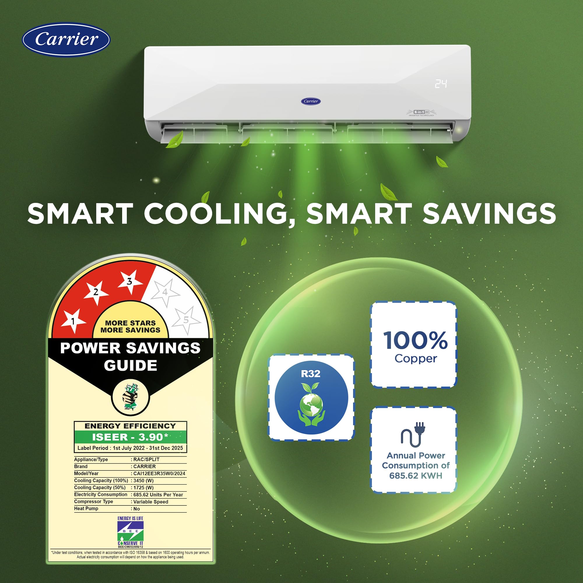 Carrier 1 Ton 3 Star Wi-Fi Smart Flexicool Inverter Split AC (Copper, Convertible 6-in-1 Cooling,Smart Energy Display,HD & PM 2.5 Filter, 2025 Model,ESTER EDGE FXi (Wi-Fi), CAI12EE3R35W0,White) price under 30000
