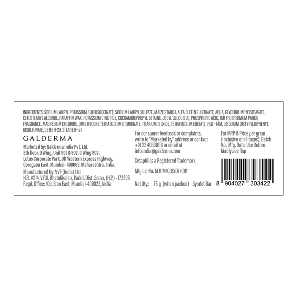 Cetaphil Cleansing and Moisturising Syndet Bar, Shea Butter,For Face & Body, Sensitive skin, 75g, Pack of 1
