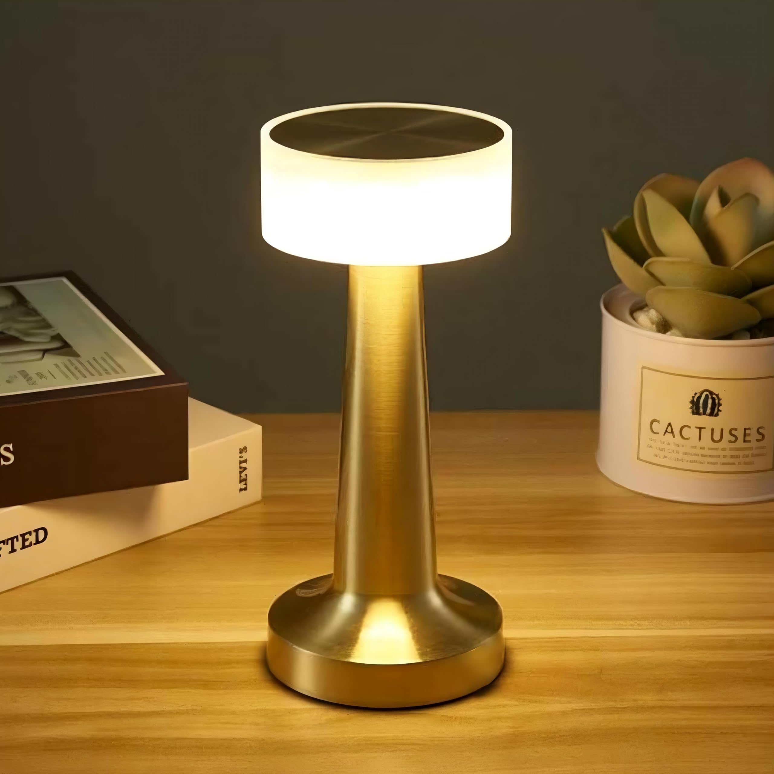 CLAPONE LED Table Lamp – Touch Control with 3 Brightness Levels & 3 Color Modes | Rechargeable Metal Desk Lamp for Bedroom, Nightstand, Living Room, Office & Study Table (Gold White, 1 Pcs)