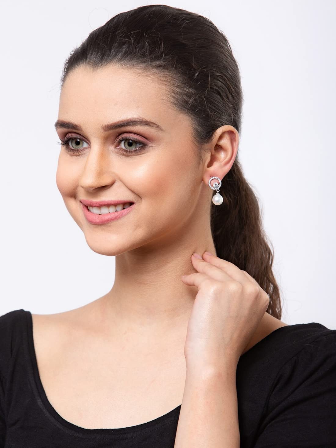 Clara 92.5 Sterling Silver Swiss Zirconia Pearl Earrings | Rakhi Rakshabandhan Gift for Sister Bhabhi |Gift for Women and Girls