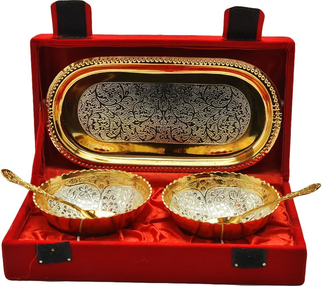 Collectible India Rakhi & Gift Set for Brother [Gift Combo - Peacock Rakhi with 2 Bowl with Velvet Box,& Greeting Card, Rakhis for Men Boy