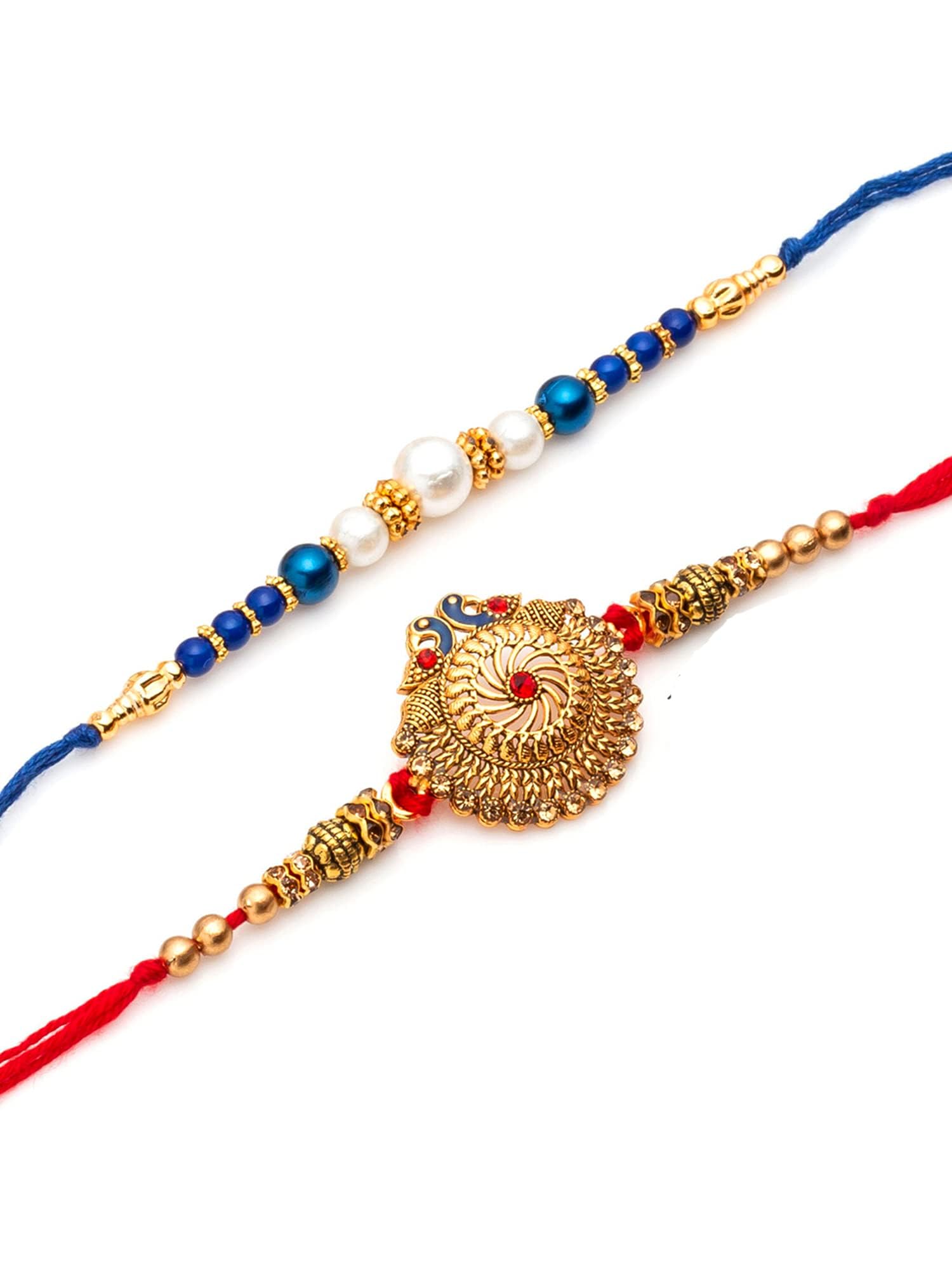 Brand: Collectible IndiaColor: MulticolourFeatures: Rakhi Gift Set Contains: Set of 2 Rakhi ( Handmade Peacock Rakhi for Bhaiya, 1 Pearl... Read more