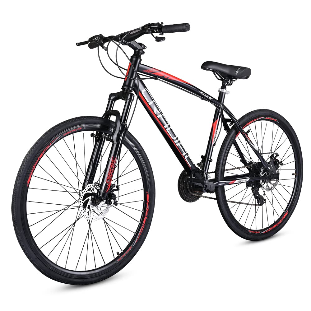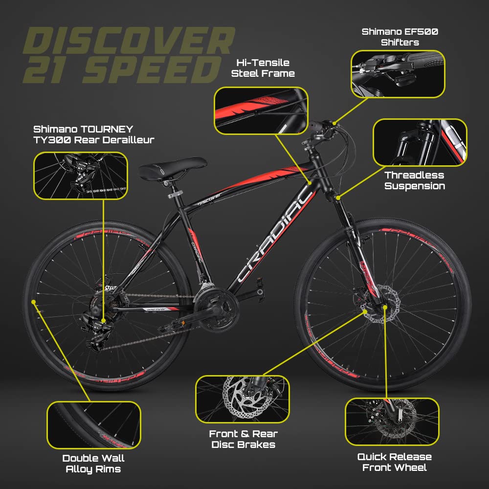 Cradiac Discover PRO 21 Speed Steel High Performance Gear Hybrid Cycles for Men with Front Suspension & Disc Brakes | Ideal for 15+ Years, Unisex, Frame Size : 18.5 Inch | 700 * 35C Tires