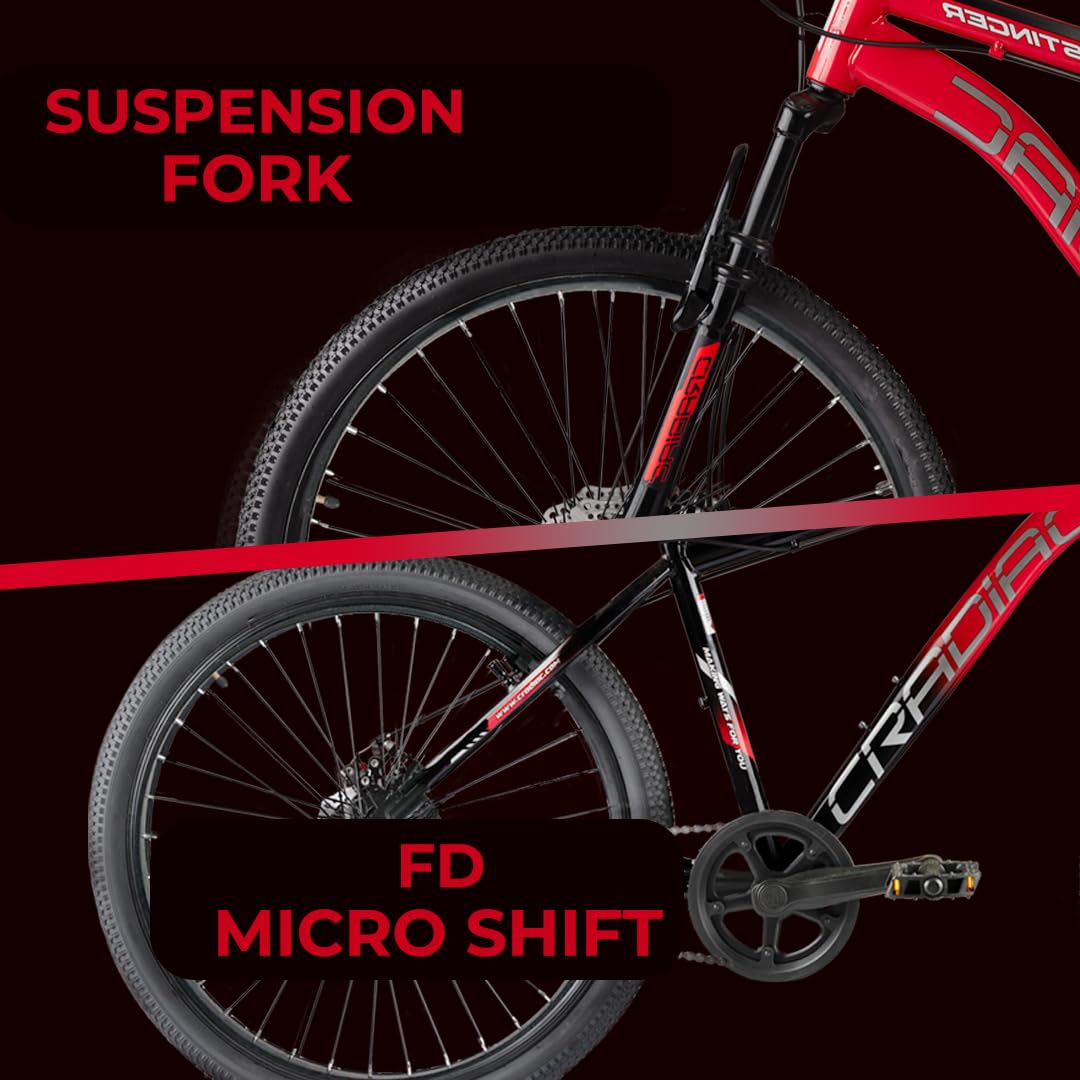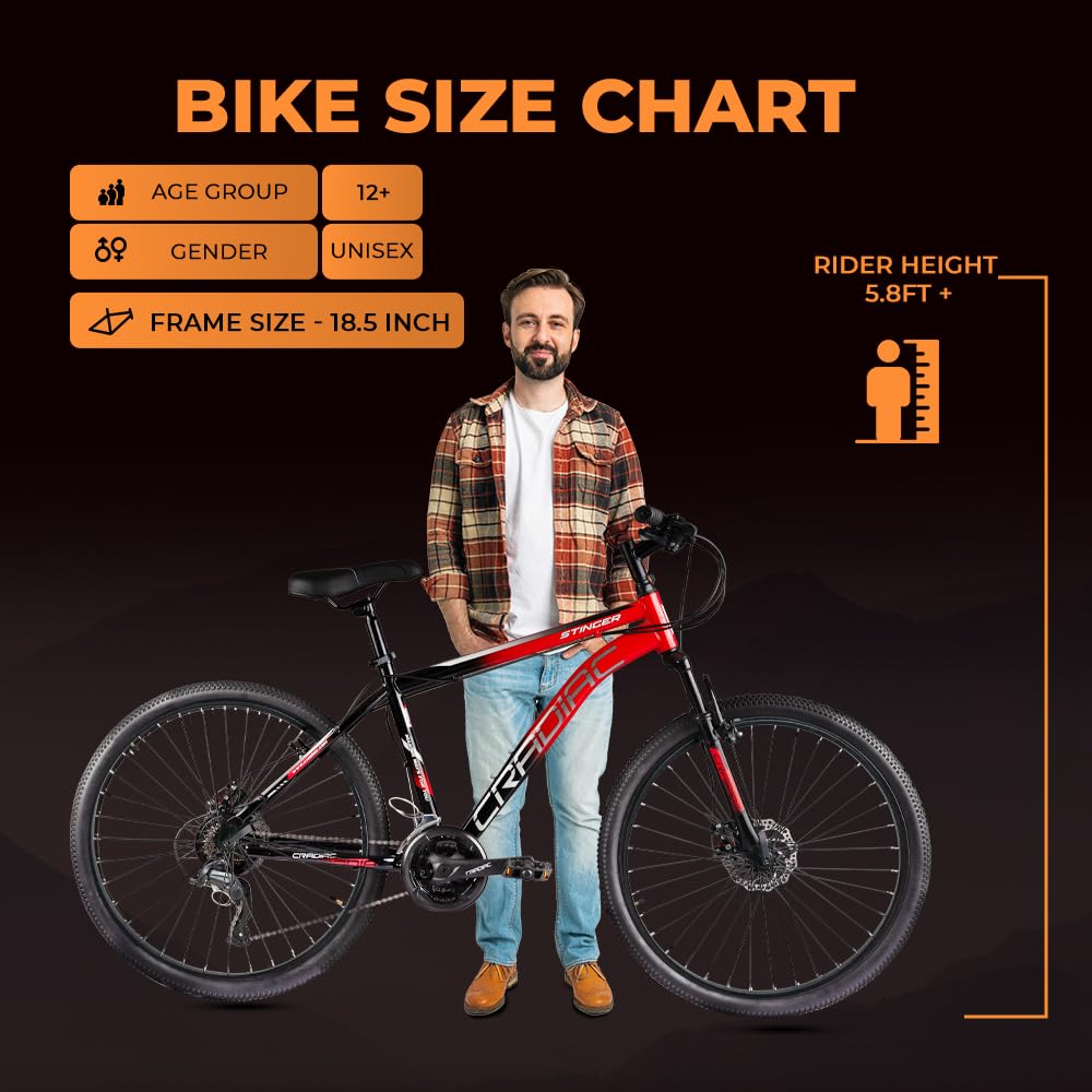 CRADIAC Stinger X7-21 Speed Cycle for Men with Dual Disc Brakes & Front Suspension Fork, 29 T 21 Speed Bicycle for Adults with Hitensile Steel Frame, Ideal for 12+ Years Unisex, 18.5 Inch Frame