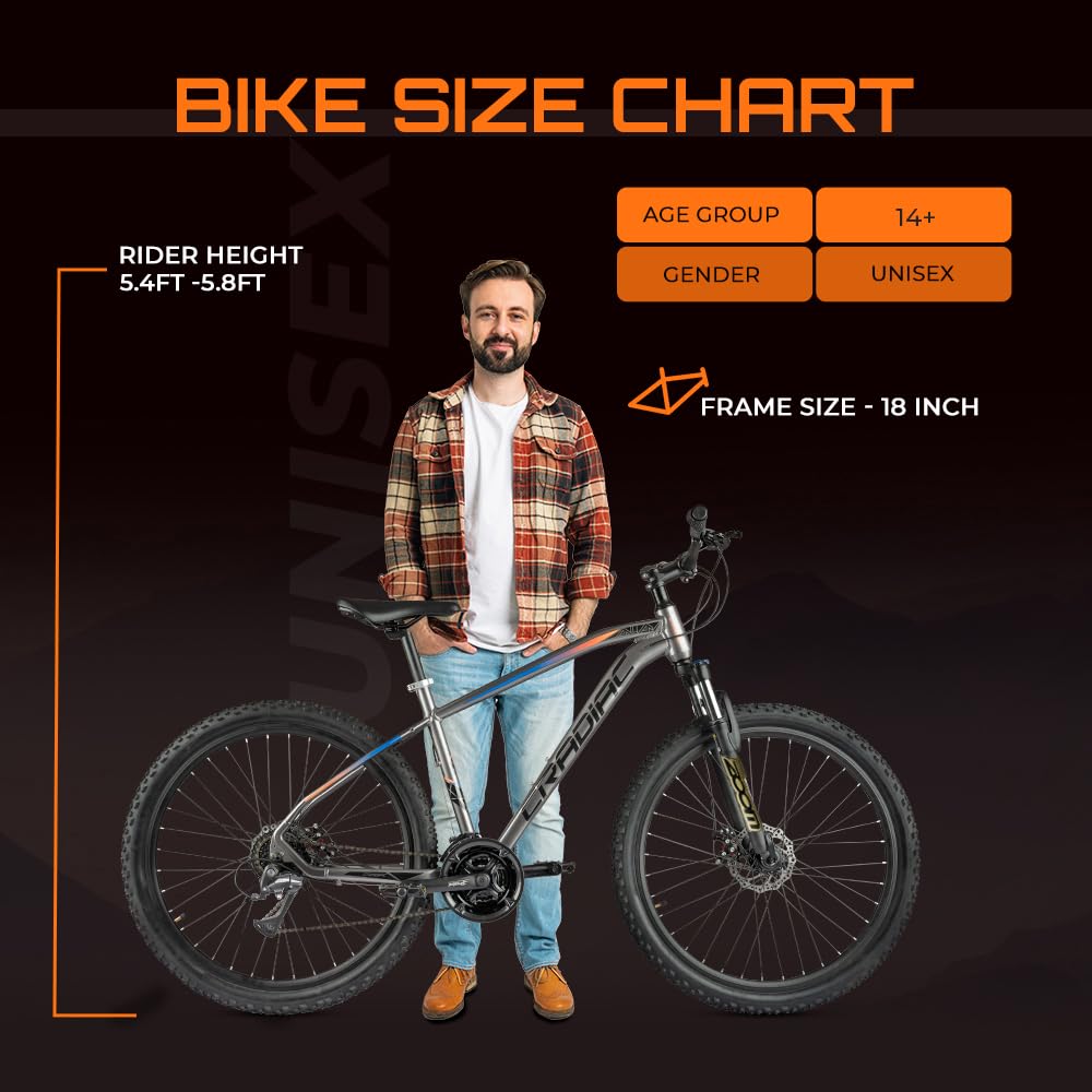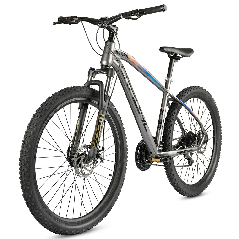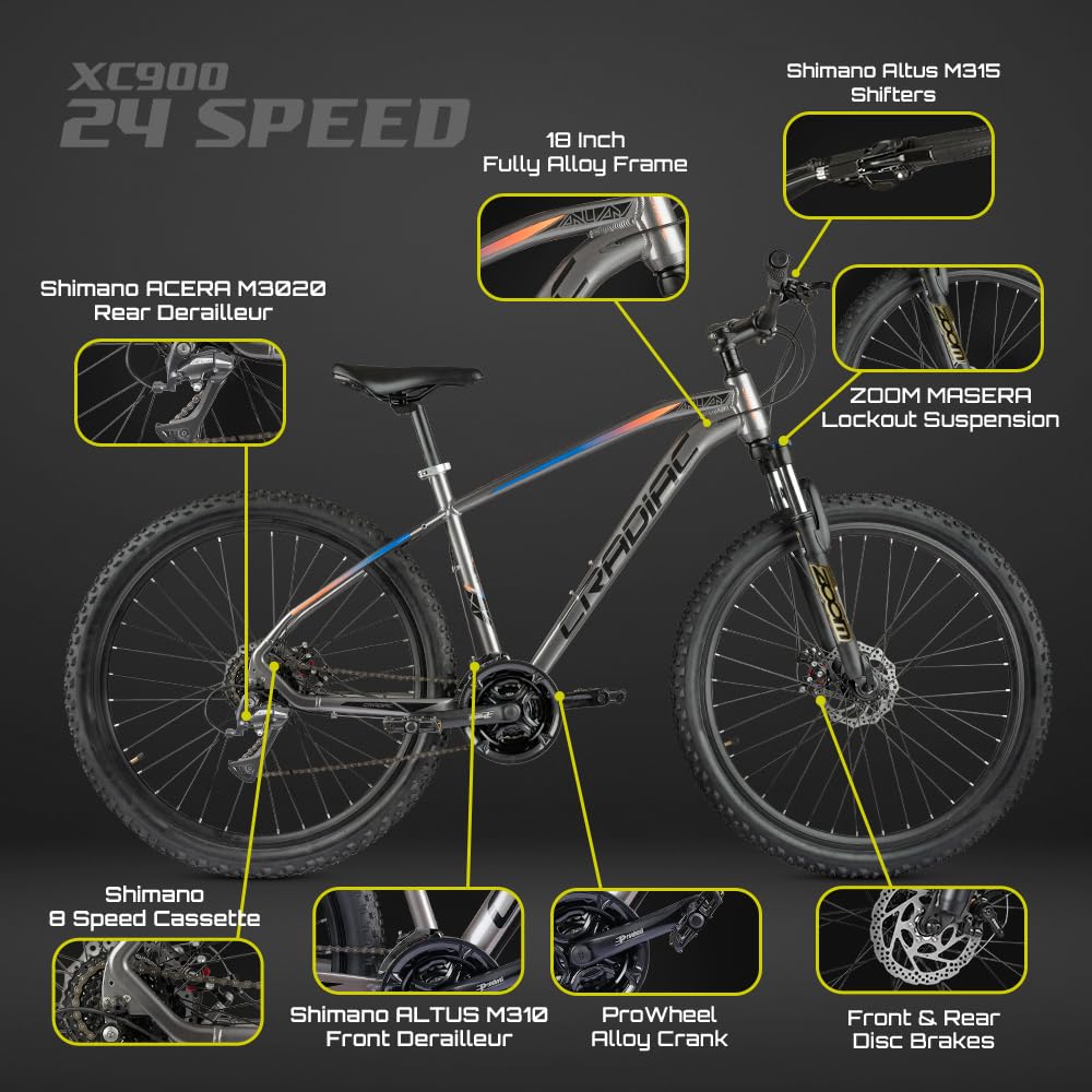 Cradiac XC 900 24 Speed 6061 Alloy Cycle 27.5 T 24 Geared Bicycle for Men with Front Zoom Lockout Suspension & Dual Disc Brake Mountain Bike | Ideal for 14+ Years, Unisex, Frame Size : 18 Inch, Grey