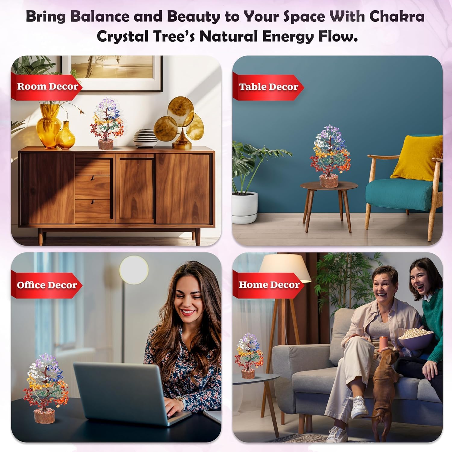 Crocon Seven Chakra Tree of Life for Positive Energy - Feng Shui Decor, Fake Bonsai, Crystals and Healing Stones, Money Tree, Room Decor 7 Chakra, Stone, Healing Crystals, Spiritual Gifts