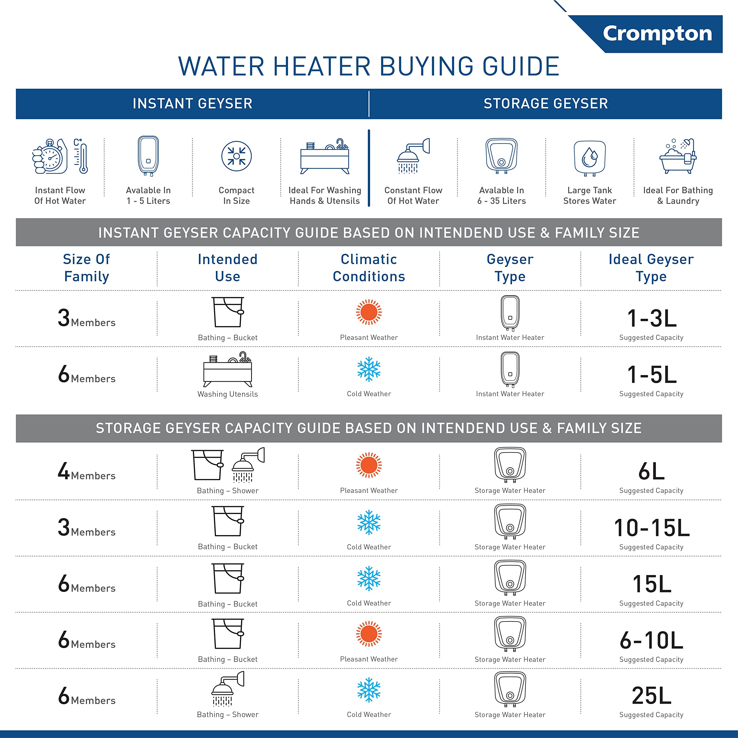 Brand: CromptonColor: GreyFeatures: PRODUCT: Crompton's energy efficient storage water heater with fast heating TECHNICAL SPECIFICATIONS: Wattage: 2000 W; Capacity: 15L;... Read more