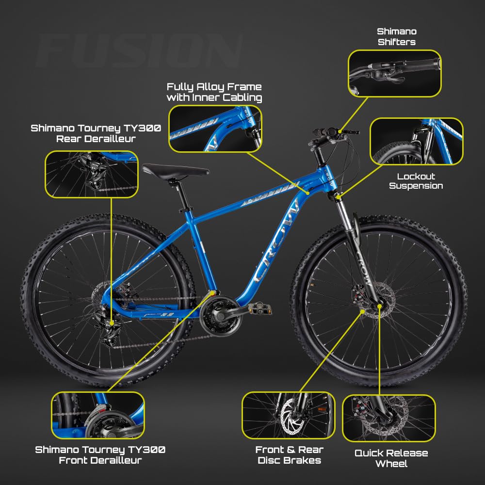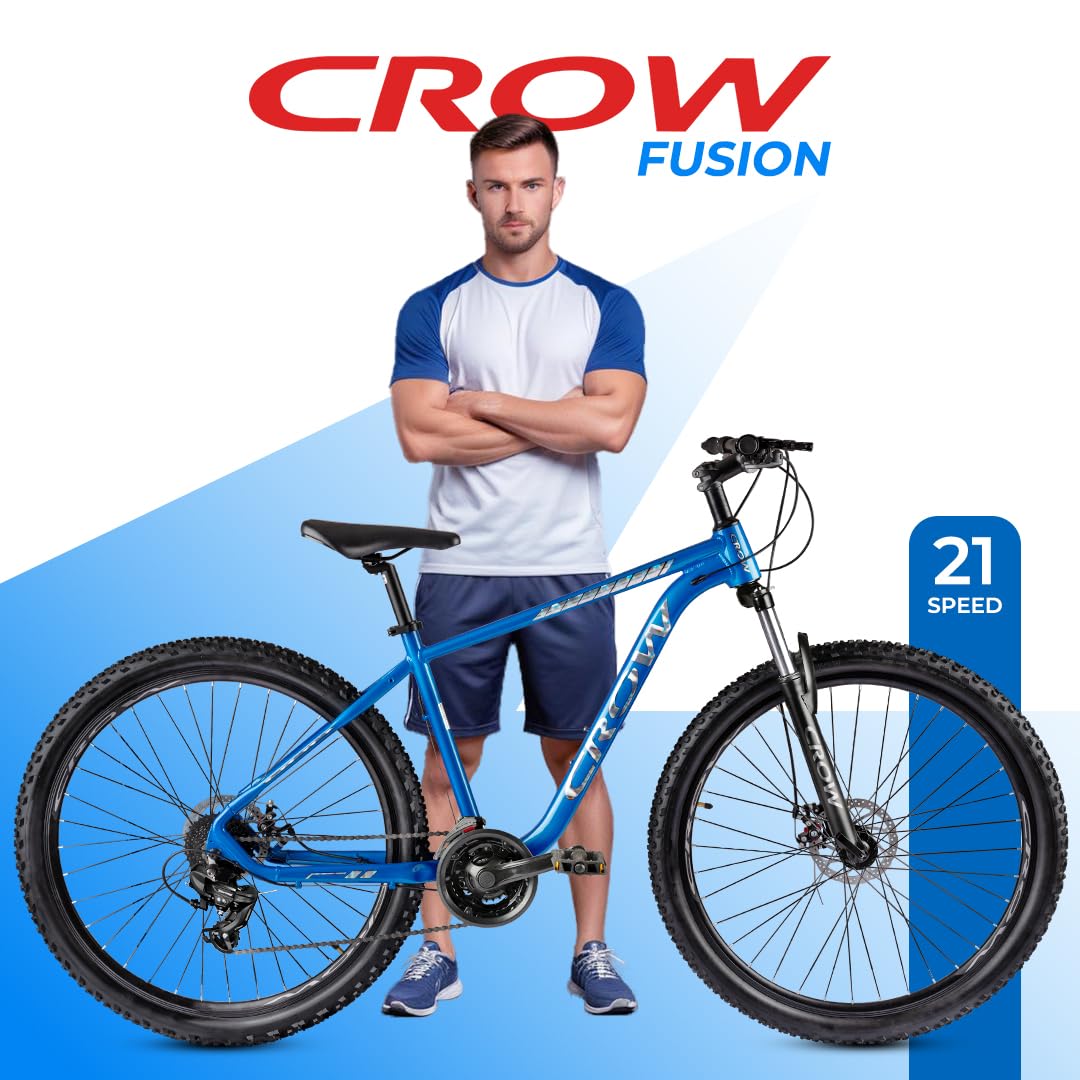 CROW - Fusion 21 Speed | 6061 Light Weight Alloy Frame | 21 Speed Gear Cycle | Lockout Suspension | 29" INCH MTB | Disc Brake | Ideal for 15+ Years with 5.8FT +