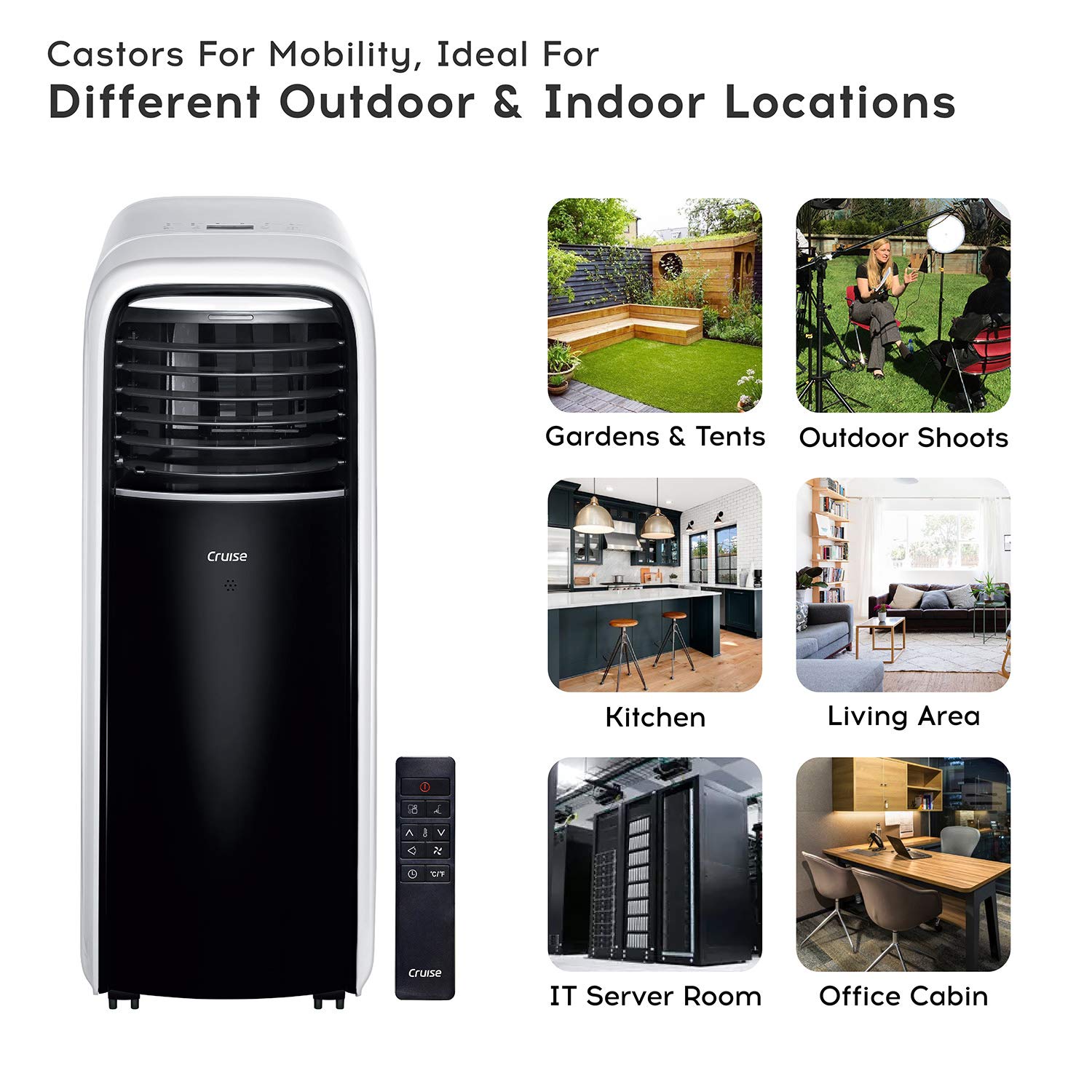 Cruise 1 Ton Portable AC With Anti Bacterial Filter 4 In 1 Dehumidifier Air Purifier And Copper Fan White Black